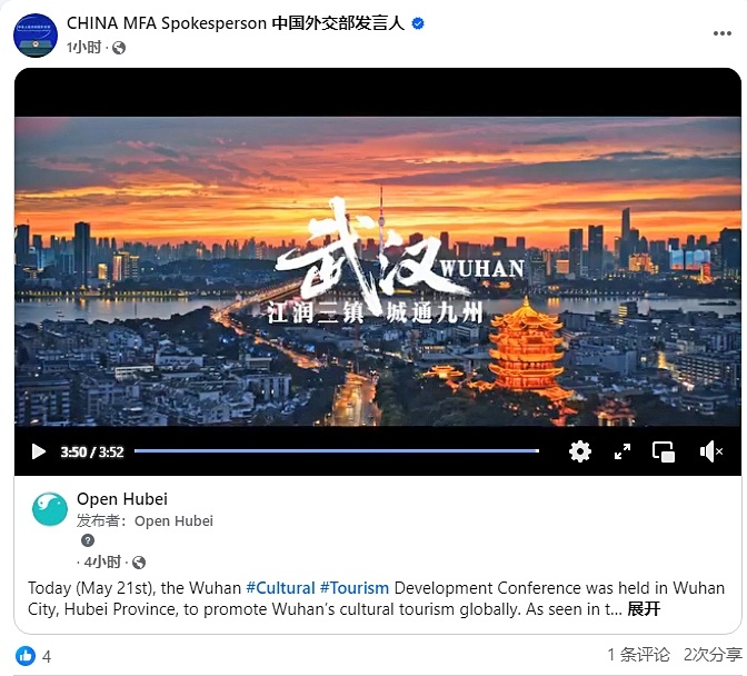当天下午1时30分左右,武汉各大官方账号发布这部文旅大片。下午2时左右,外交部发言人海外账号Facebook和X转发此片,向世界展开英雄城市的壮阔画卷。“以影像解码长江之畔的千年传奇,每一帧都值得细细观赏!”“我在樱花季来过武汉,非常棒!”海外网友纷纷留言点赞。