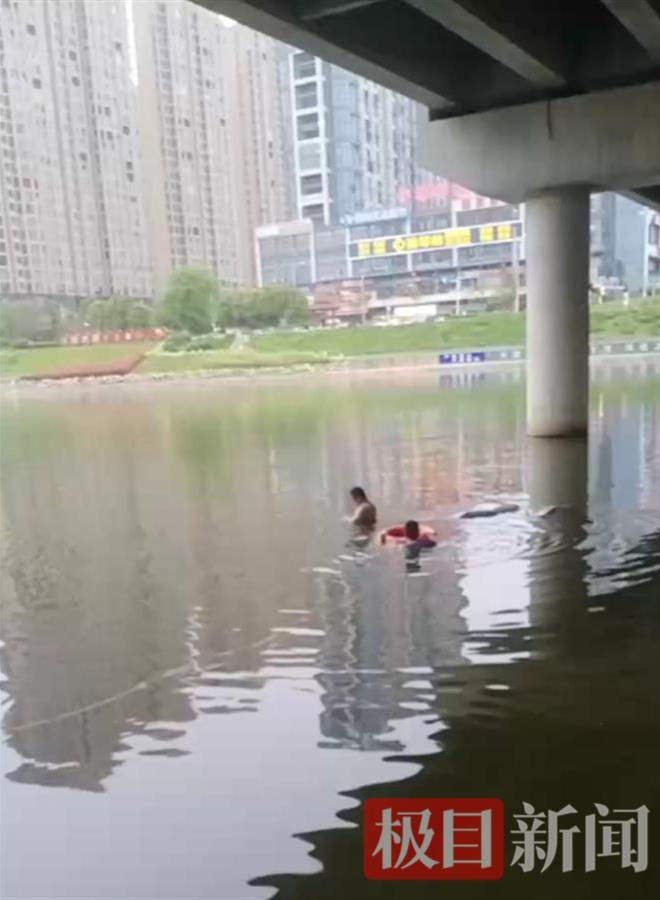 这时,罗某妻子也从后车门爬出,紧紧抓住后车门,车辆已大部分沉入水中,只剩下车尾露出水面。