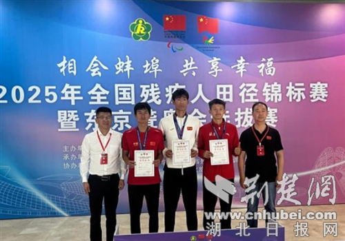 荆楚网(湖北日报网)讯(通讯员 赵继、曹吉芬)近日,在2025年全国残疾人田径锦标赛暨东京聋奥会选拔赛中,钟祥籍田径运动员祝家周表现卓越,在男子听障组赛事里,一举斩获4×400米接力金牌,同时将4×100米接力银牌、400米栏银牌收入囊中。