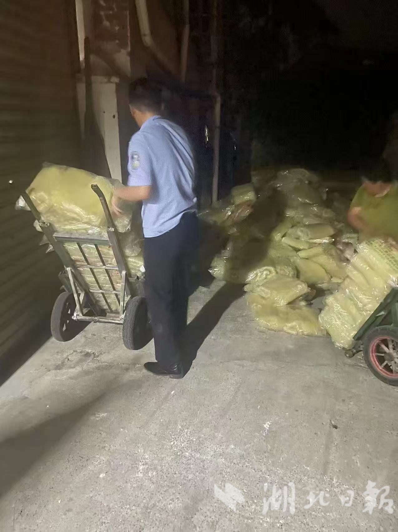 湖北日报讯(通讯员付冉、周诗瑶)5月21日22时32分,武汉市公安局江夏分局郑店所接到报警,称郑店街劳一村发生一起货运纠纷。调解结束时暴雨即将来袭,民警帮忙紧急转移露天堆放的4.2吨干米粉,避免了经济损失。
