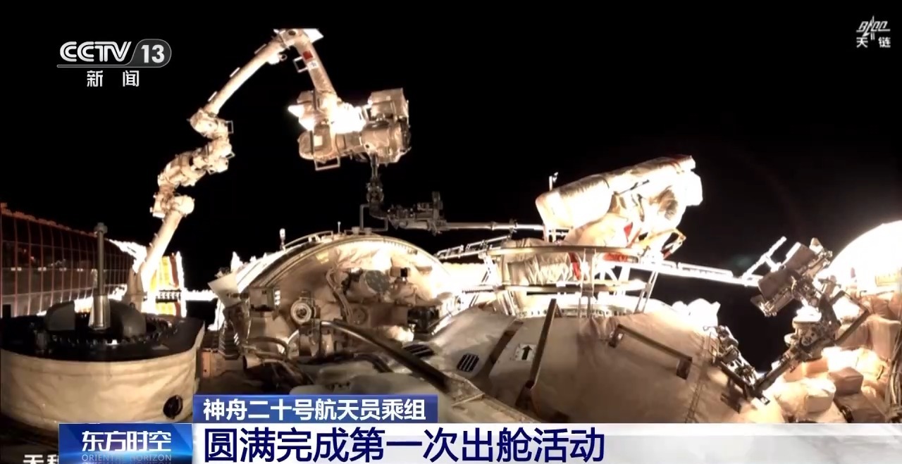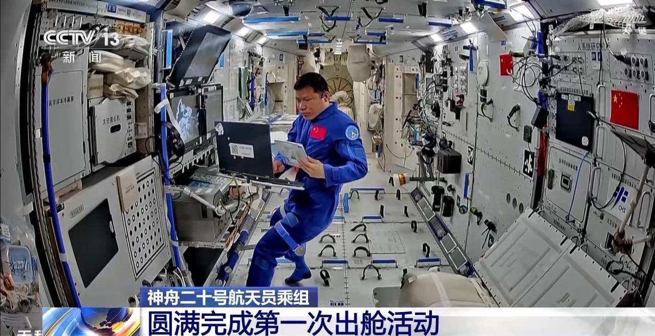 今天16时49分,经过约8小时的出舱活动,神舟二十号乘组航天员陈冬、陈中瑞、王杰密切协同,在地面科研人员配合支持下,圆满完成首次出舱任务。