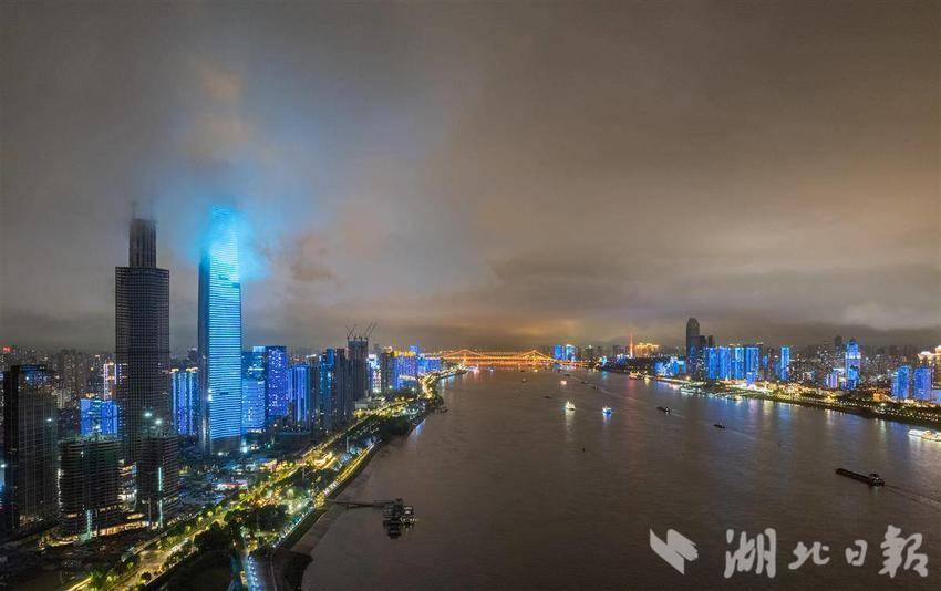 5月22日,航拍武汉城区夜景。5月22日19时许,下了一天的暴雨暂时停歇,武汉市区空气清新通透。暴雨过后,在多部门的紧密配合下,武汉防汛应急工作井然有序,道路上积水消失,交通恢复正常。(湖北日报全媒记者 柯皓 摄)