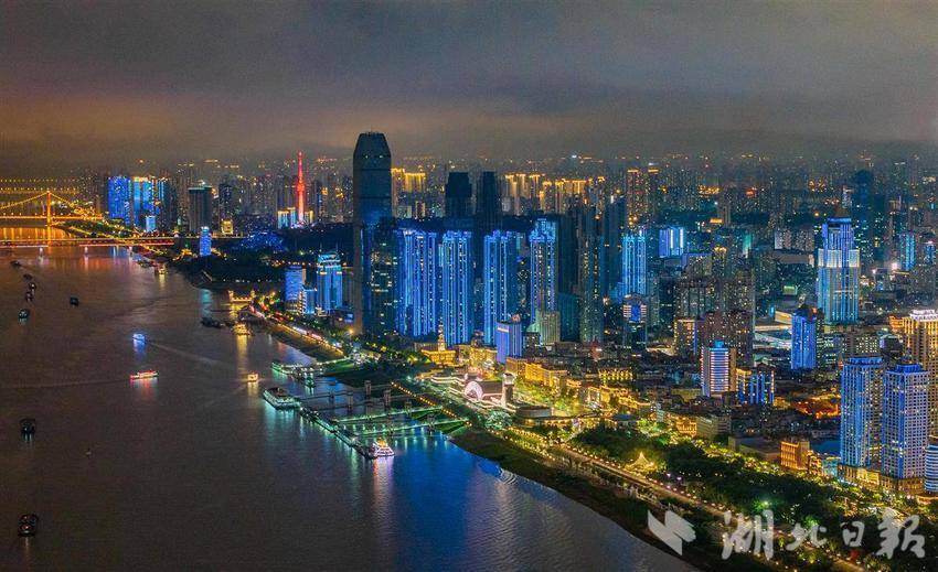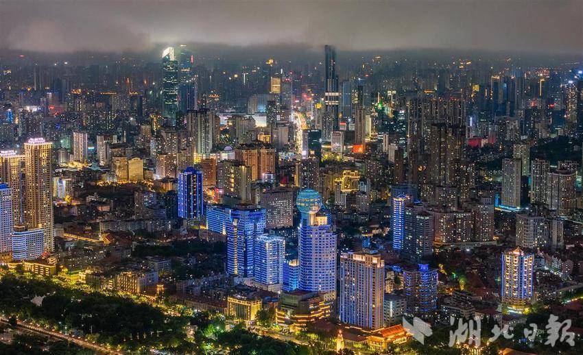 5月22日,航拍武汉汉口城区夜景。5月22日19时许,下了一天的暴雨暂时停歇,武汉市区空气清新通透。暴雨过后,在多部门的紧密配合下,武汉防汛应急工作井然有序,道路上积水消失,交通恢复正常。(湖北日报全媒记者 柯皓 摄)