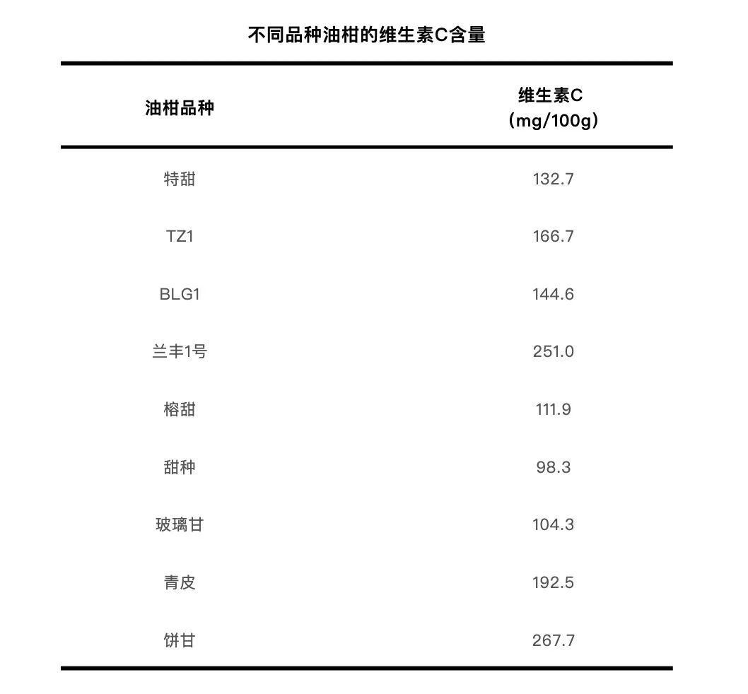 有文献数据显示,有些油柑品种的维生素C含量超过了 100mg/100g,有研究人员对比了 9 个不同品种的油柑,包括“特甜”“TZ1”“BLG1”“兰丰 1 号”“榕甜”“甜种”“玻璃甘”“青皮”“饼甘”。结果显示:这9个品种中,维生素C含量最低的是甜种,含量为 98.3mg/100g;最高的是饼甘,含量为 267.7mg/100g,这含量是橙子的近 8 倍。