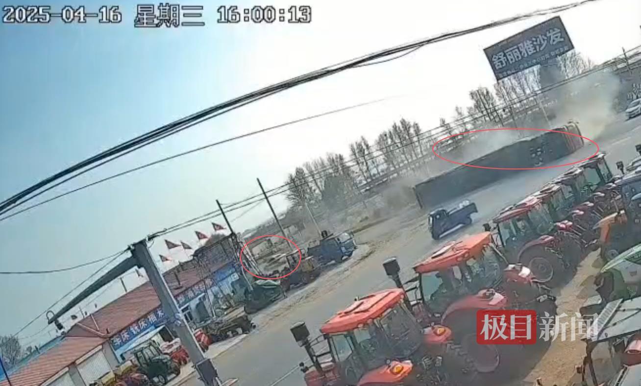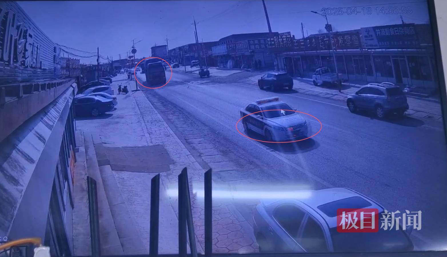 多段监控显示,2025年4月16日14时58分,一辆开着警灯的白色轿车行驶在一辆半挂车前方。记者在地图上检索视频中的商户发现,此处为S302公路,距离康平县二牛所口镇政府700多米。16日15时54分至59分,前述轿车疑似追逐半挂车和别半挂车,两车还并行。16日16时6分,半挂车行驶至十字路口,车尾倾斜,几秒后整车侧翻。