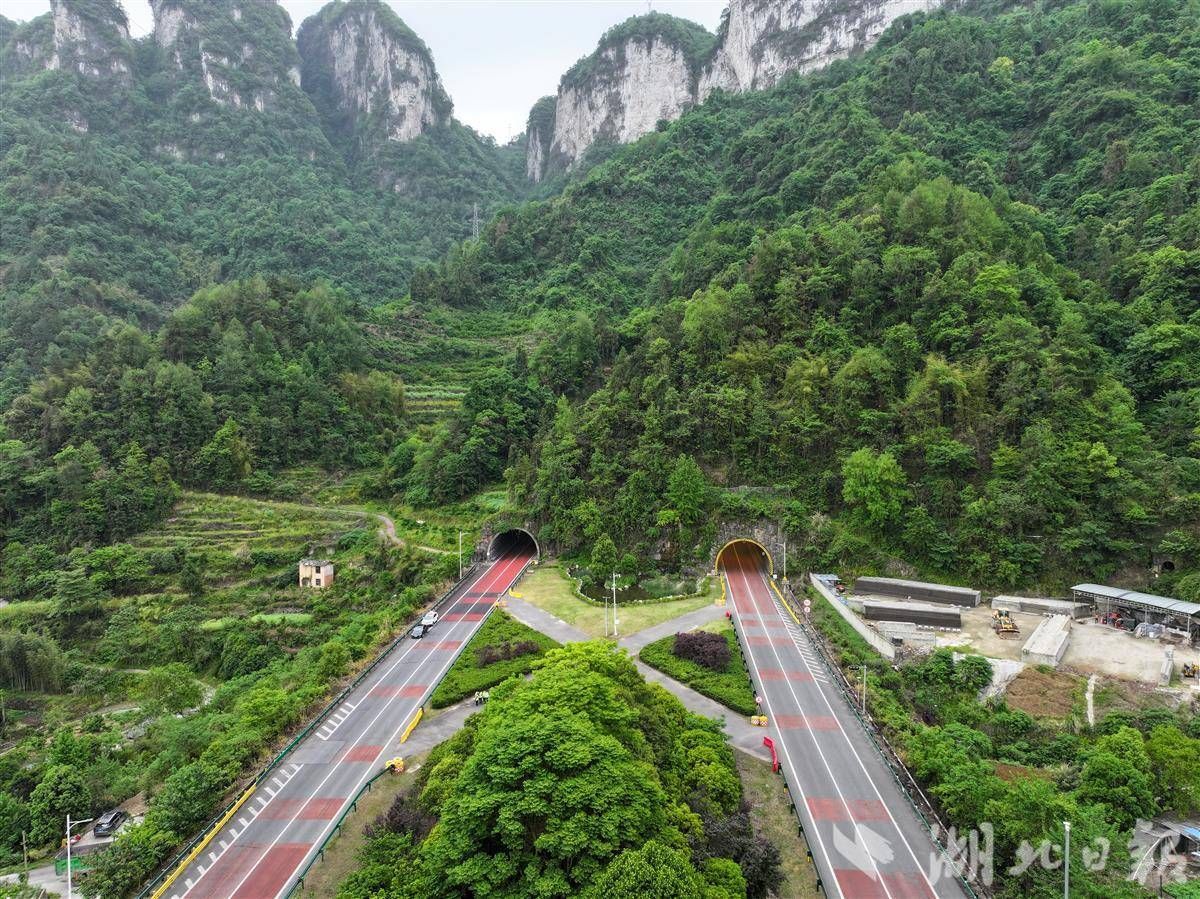 在保神高速,生态智慧同样令人惊叹。作为湖北首条直通神农架的高速公路,以“自然和谐、生态环保”为设计理念,将现代工程与原始生态完美融合,沿线设置通透式防撞护栏,让尧治河碧波、五道峡奇峰、黄龙观胜境化作流动的风景线。在阳日隧道口,以原始人类生活为蓝本的艺术浮雕与自然山水相映成趣,实现“车行画中,人在景中”的独特意境。