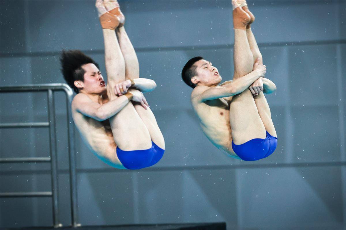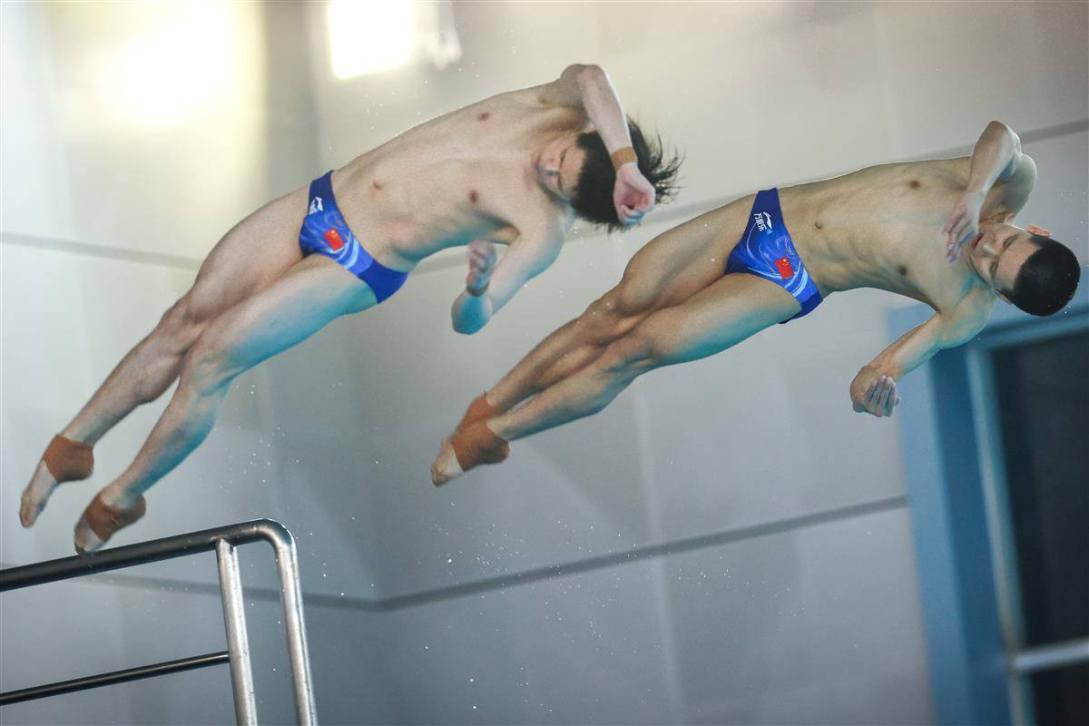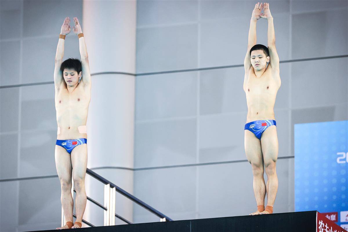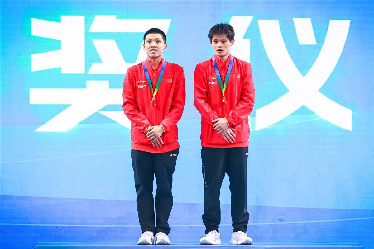 5月24日,2025年全国跳水冠军赛暨新加坡世锦赛选拔赛、全运会跳水项目资格赛在武汉体育中心游泳跳水馆揭幕,并在男子双人10米台产生首枚金牌。湖北19岁小将程子龙携手国家队队友、广东选手朱子锋以421.89分加冕,为代表中国队出战新加坡世锦赛增添砝码。(湖北日报全媒记者 时龚 摄)