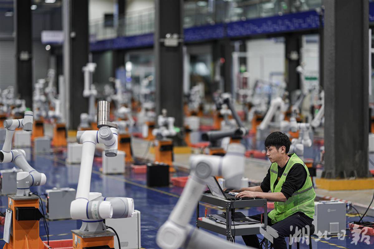 作为国家级专精特新“小巨人”企业,越疆机器人连续六年位居国产品牌工业机器人出口量第一位,全球累计出货量达72,000台,远销100多个国家和地区,助力立讯精密、比亚迪、富士康、华为、三星、索尼、丰田、大众等数十家世界500强企业实现产能进化。(湖北日报全媒记者任勇 摄)