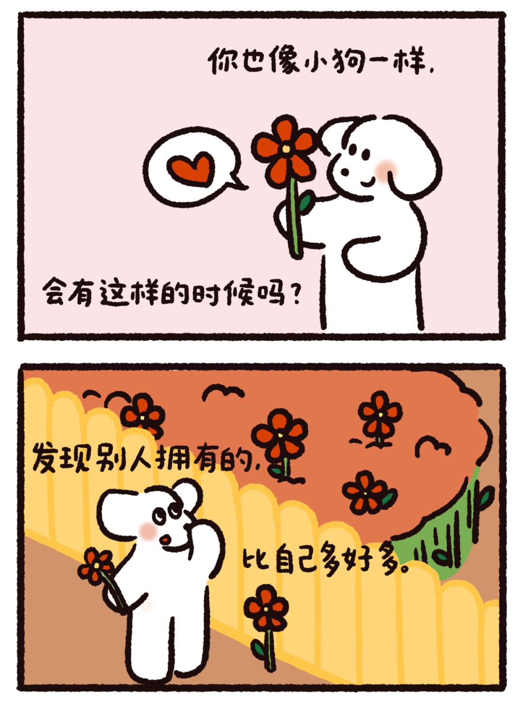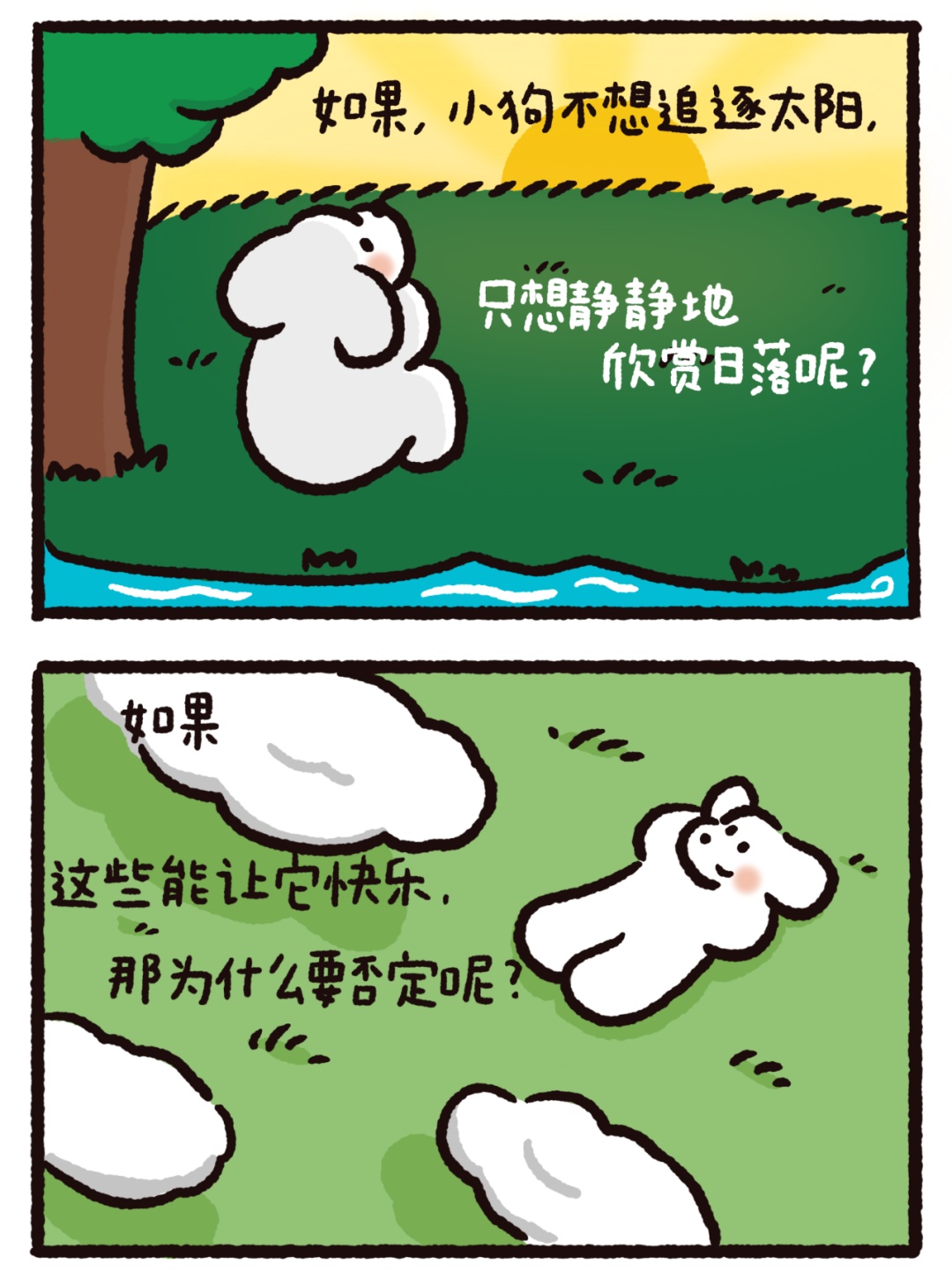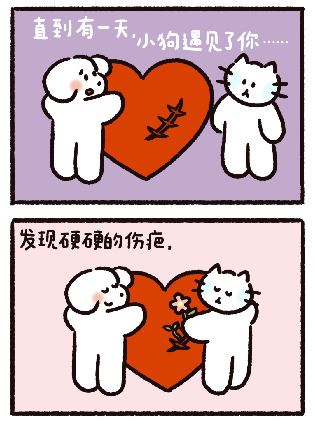 今天的作品来自@荷小何何何。5个温暖治愈的漫画小故事,是送给你的一剂心灵药水。来,摸摸小狗头,万事不用愁!