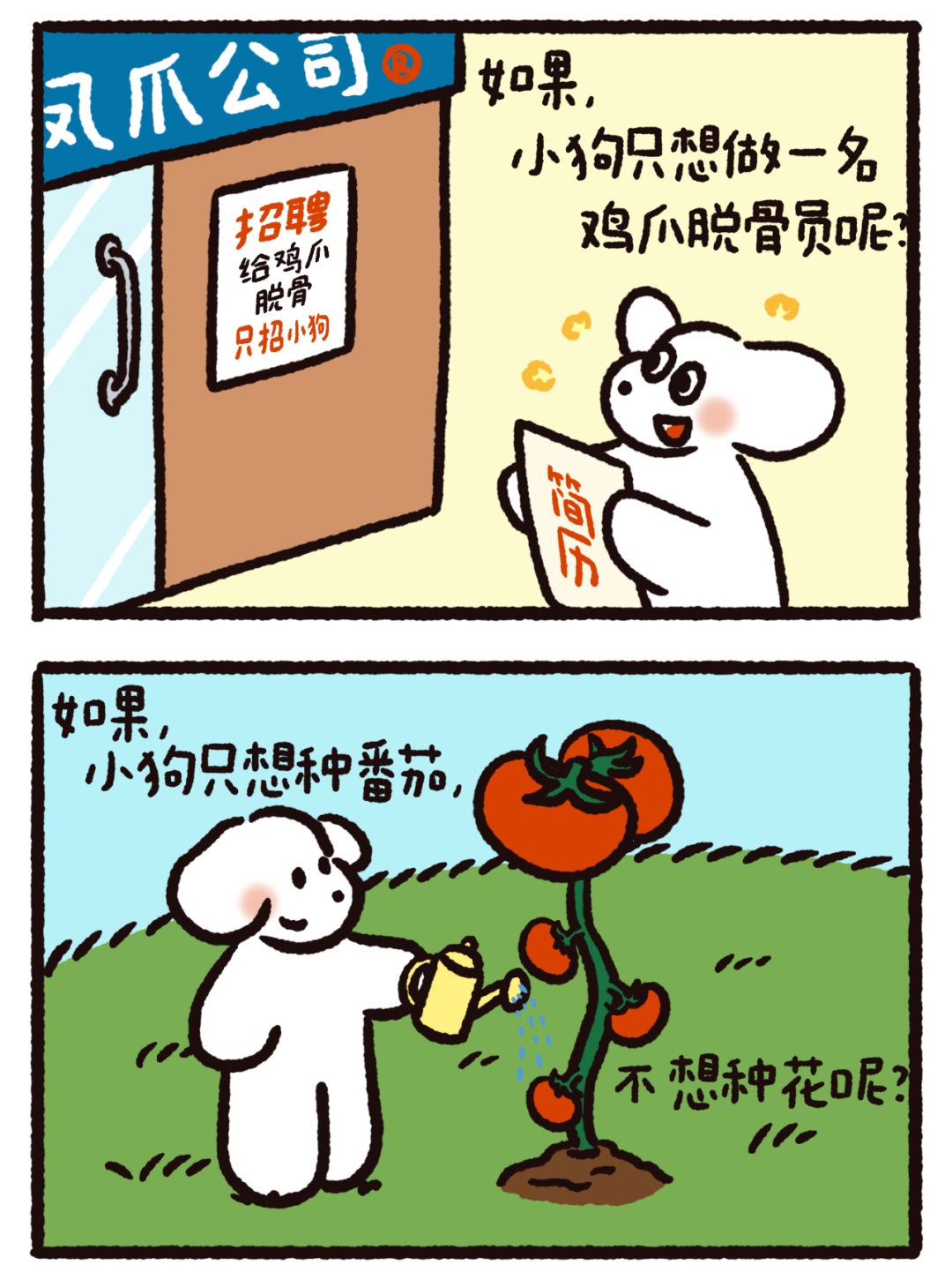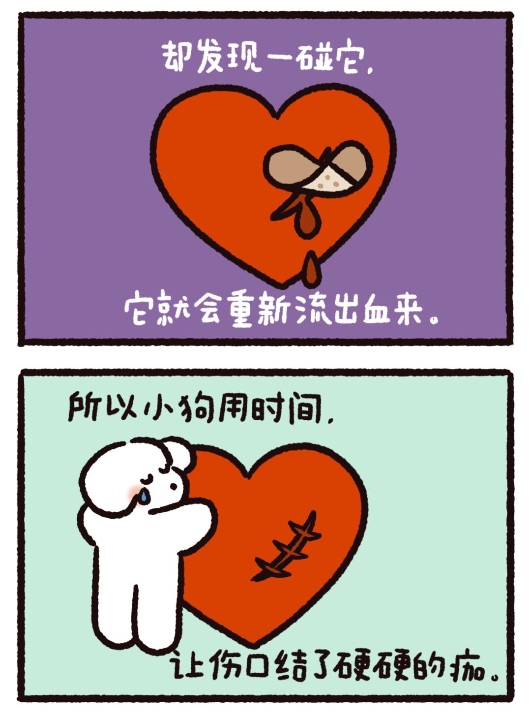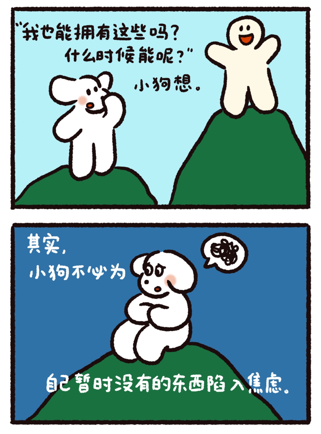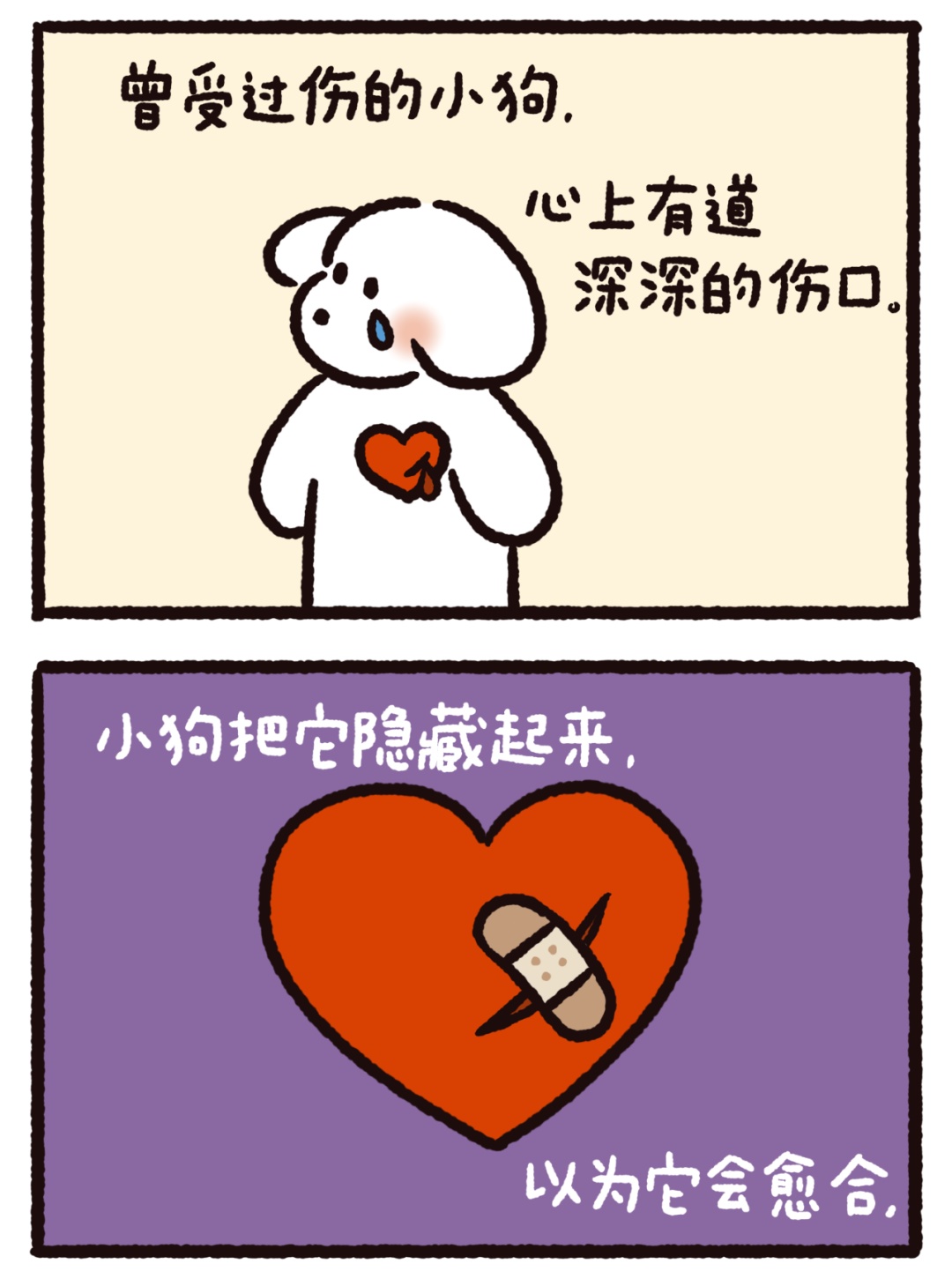 今天的作品来自@荷小何何何。5个温暖治愈的漫画小故事,是送给你的一剂心灵药水。来,摸摸小狗头,万事不用愁!