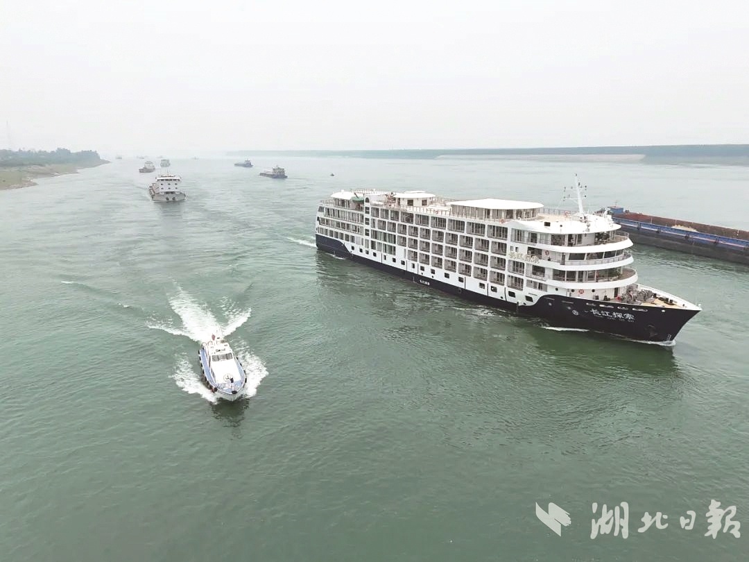 5月24日,“长江探索”号游轮在宜昌枝江首航,成为我国内河新一代能够通过三峡升船机的豪华游轮。