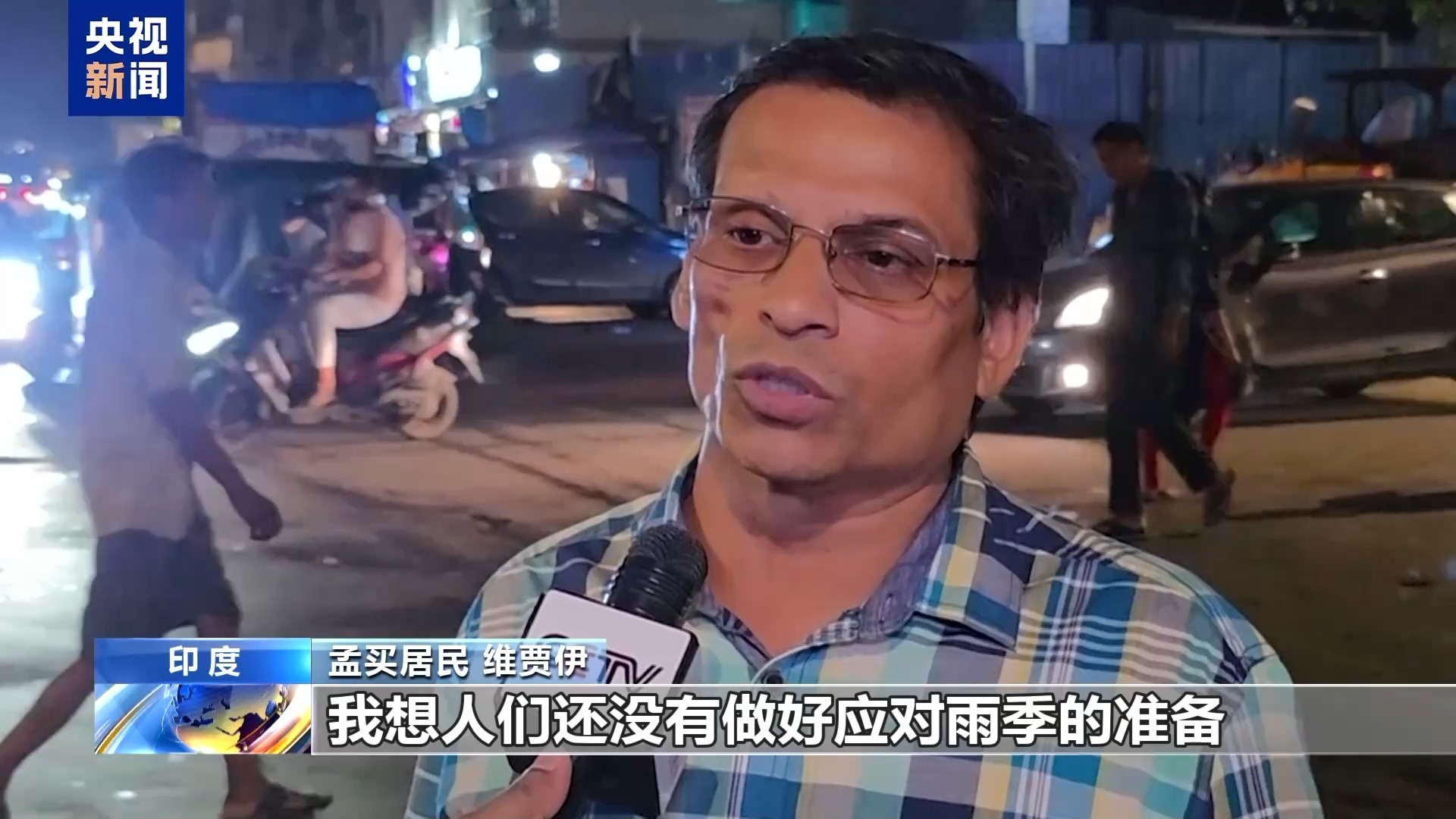 孟买居民 维贾伊:今年5月26日季风雨季就开始了,我想人们还没有做好应对雨季的准备,75年来孟买的季风雨季从未来得这么早,在孟买的一些低洼地区,道路因积水而瘫痪。