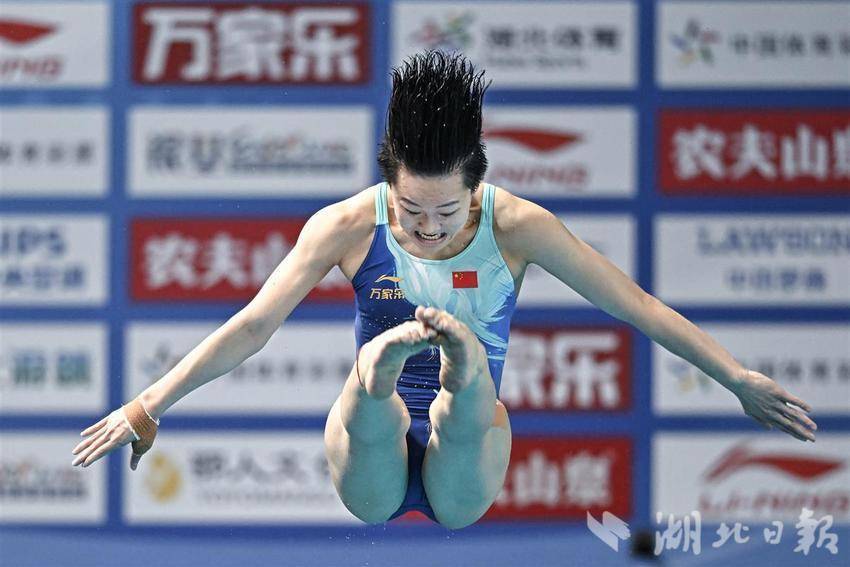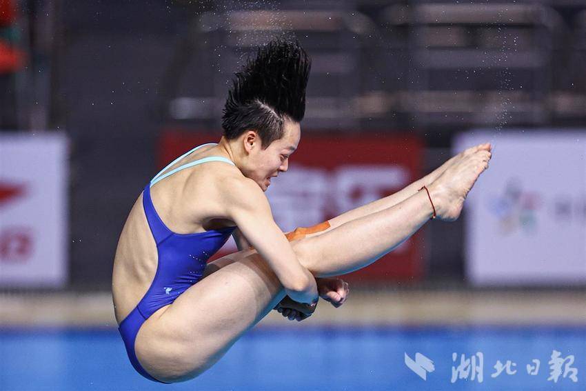 5月27日,陈艺文在三米板比赛中走板起跳。(湖北日报全媒记者任勇 摄)