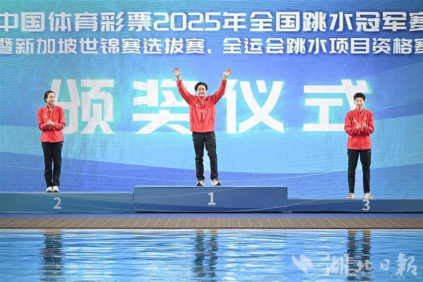 5月27日,陈艺文在三米板比赛中起跳。当日,在湖北武汉举行的2025年全国跳水冠军赛暨新加坡世锦赛选拔赛、全运会跳水项目资格赛女子3米板决赛中,广东海印队队员陈艺文以总成绩392.70分夺得冠军。(湖北日报全媒记者任勇 摄)