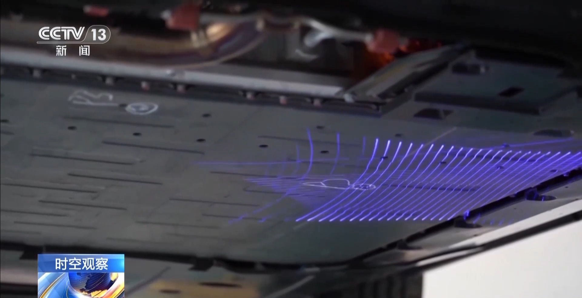 总台央视记者 罗宏进:这里是电池包底部安全碰撞试验的现场,我们可以看到,30毫米的钢制撞击头将以150焦耳能量撞击电池包上面的风险点,这样的风险点在电池包底部共选取了前、中、后三处。