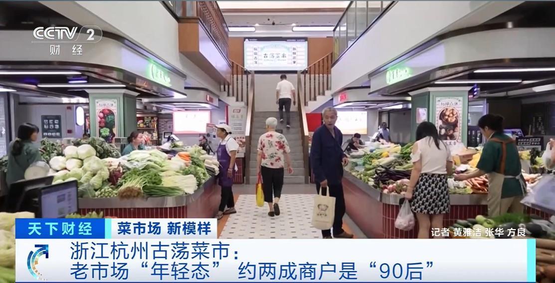 浙江杭州的古荡菜市是一个有着29年历史的老市场,近几年进行了多次升级改造,洁净的空间和丰富的业态,吸引了不少年轻创业者。油条咖啡相映成趣,休闲放松老少皆宜。