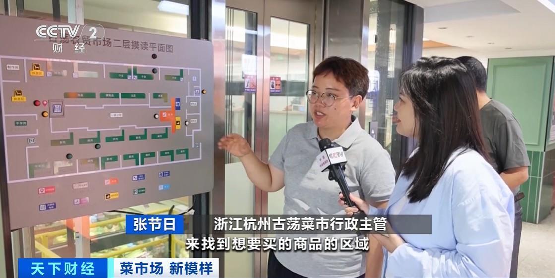 古荡菜市,前身古荡农贸市场,已有29年历史。吸纳年轻人的同时,菜场改造依然充分考虑了老年人的购物需求,进行了周到的适老化改造。不仅有直梯、无障碍通道,每层电梯口的盲文摸读平面图,也显示出菜场的用心。