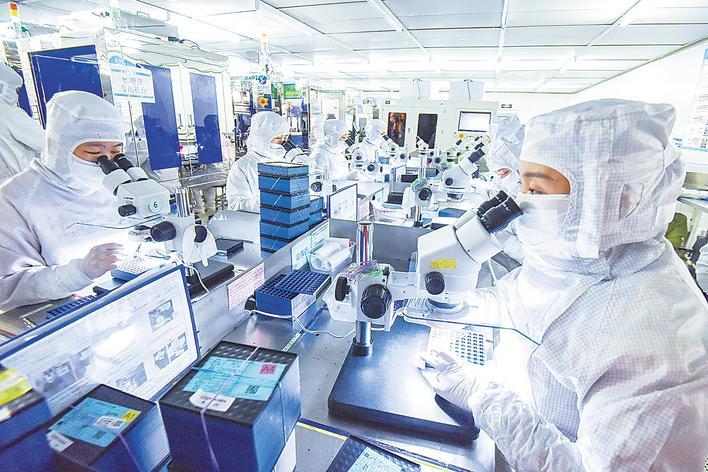 “你看,这块镜片上我们镀了120层膜,像素能达到2亿,但是厚度只有0.21毫米。”五方光电总裁办外联部经理杨锋拿着一块滤光片样品说,“现在行业一般是100层,我们在技术上可以达到200层,处于全球一流水平,产品可用于光通信、航空航天等更多高精尖领域。”