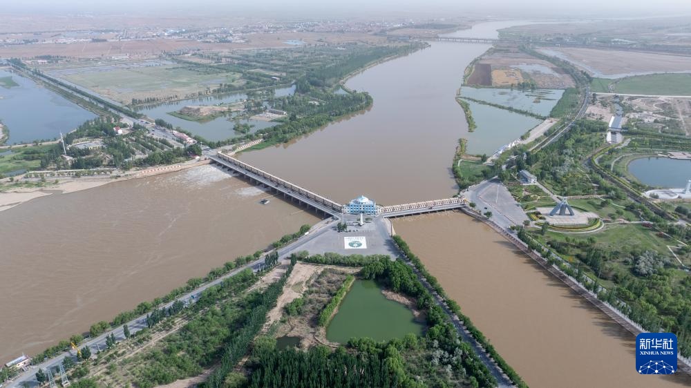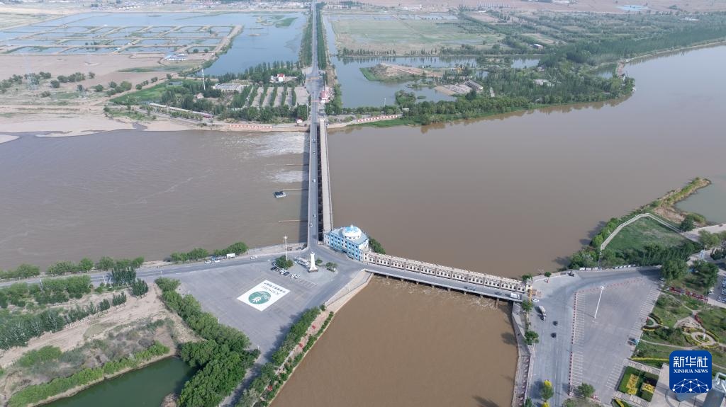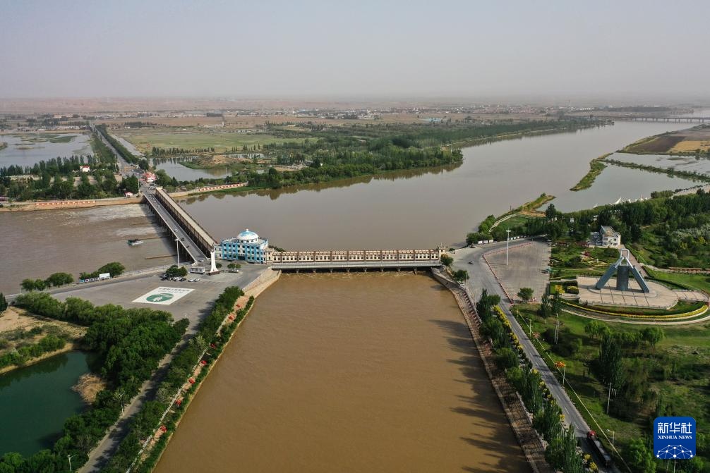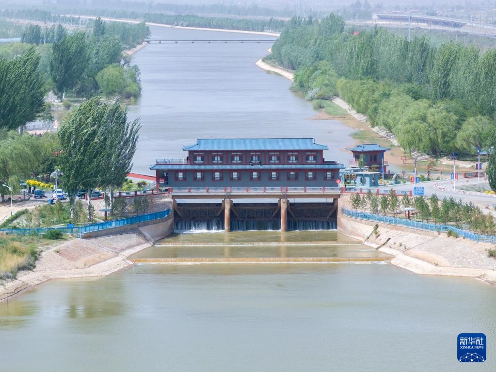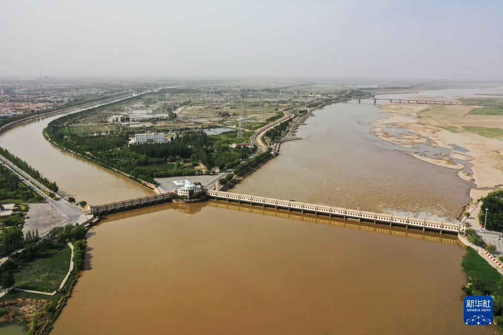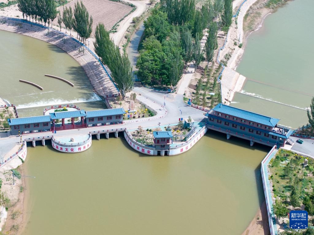 这是5月28日拍摄的巴彦淖尔市临河区境内的总干渠第二分水枢纽(无人机照片)。
