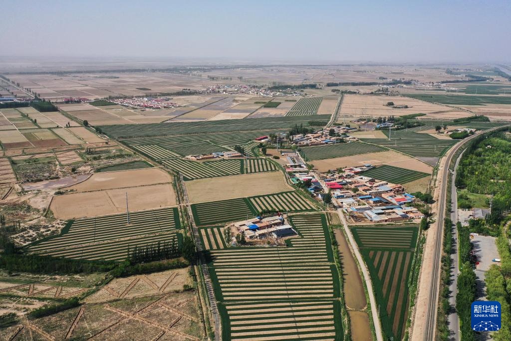 这是5月28日拍摄的巴彦淖尔市磴口县境内的农田(无人机照片)。
