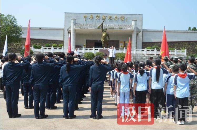 在中原突围纪念馆前重温入团誓词