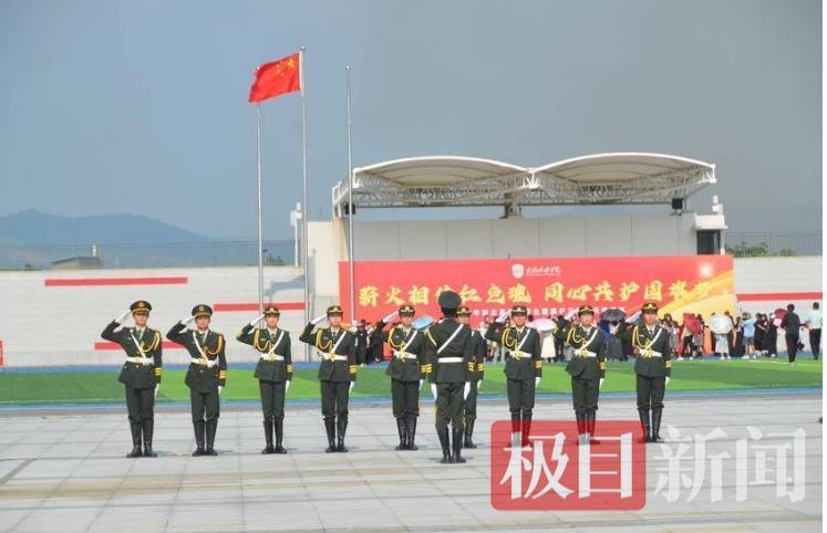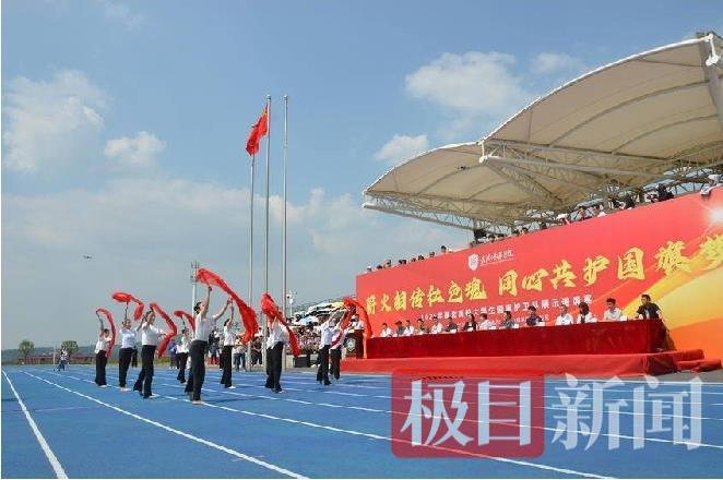 薪火相传红色魂,同心共护国旗梦。当天下午,骄阳似火。在武汉传媒学院大悟校区操场上,一场“行走的思政课”在武汉传媒学院大悟校区展开。