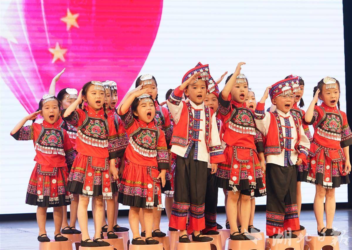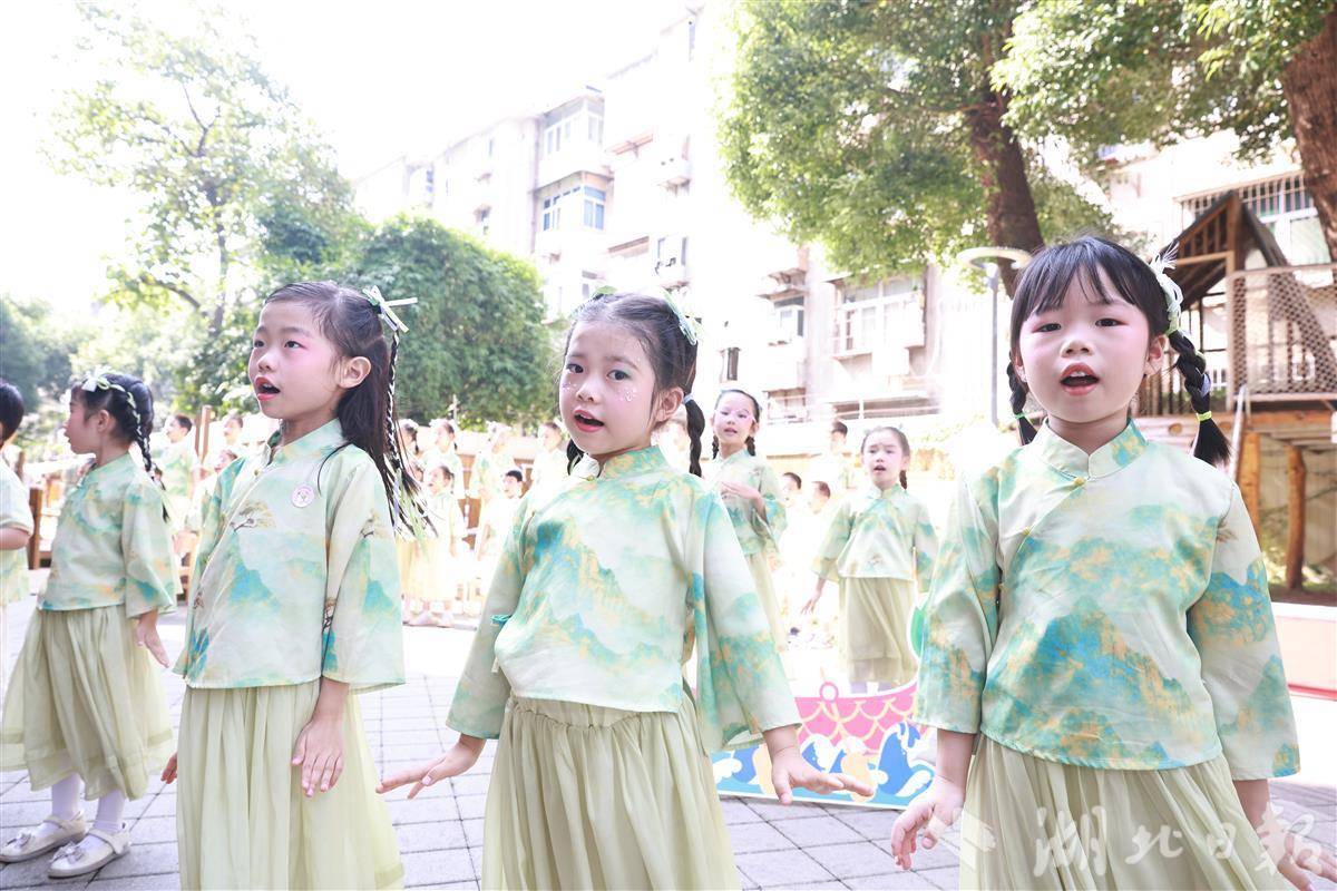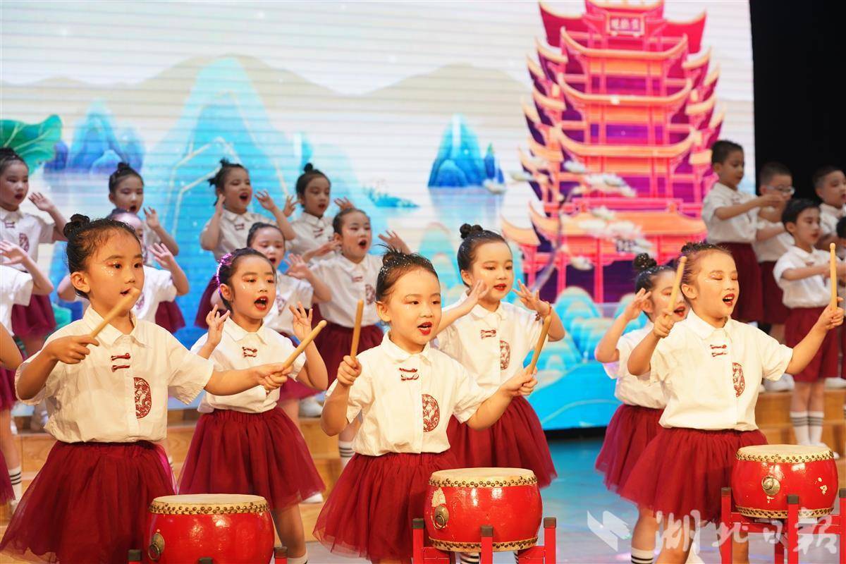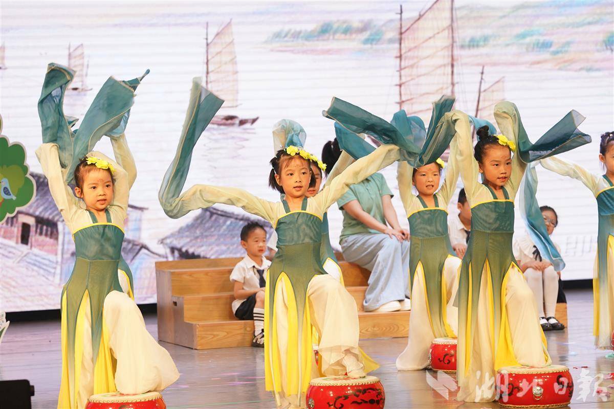 5月30日,省直机关第二幼儿园大礼堂,孩子们用天籁童声和舞蹈唱响长江边的童年故事,展现新时代幼儿的灵动风采。《玉盘叮咚》、《三峡的孩子爱三峡》、《螃蟹谣》、《中国话》、《彩虹的微笑》等曲目,既有峡江民谣的清亮悠扬、童谣的童趣盎然,也有快板的铿锵韵律与流行乐的甜美欢快,童真与荆楚江韵在音符中交织飞舞。《小江豚回家》音乐剧用温暖的剧情,传递着守护长江生态的美好愿景,在孩子们心中播撒爱护长江的种子。