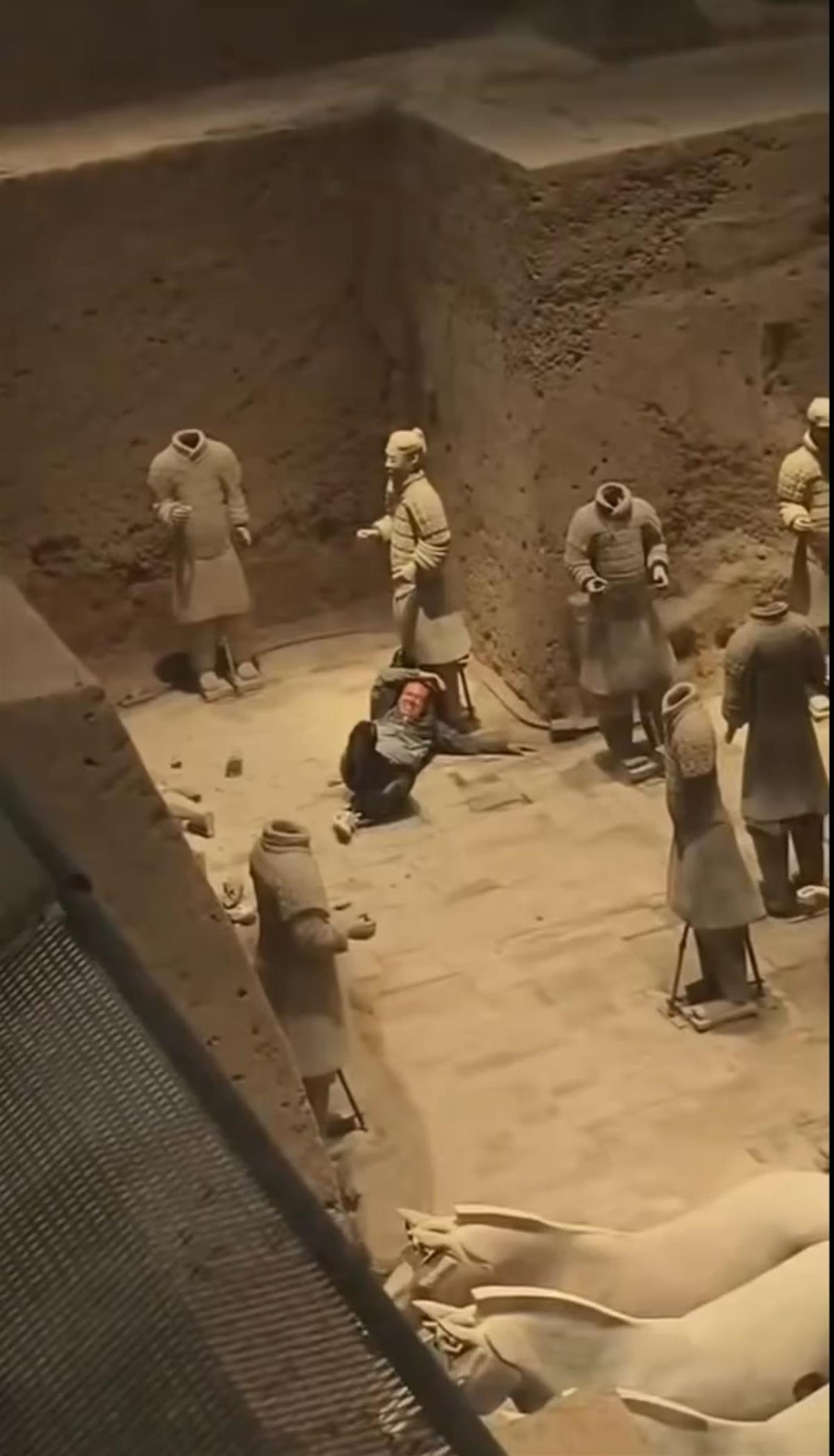 男子跳下兵马俑坑