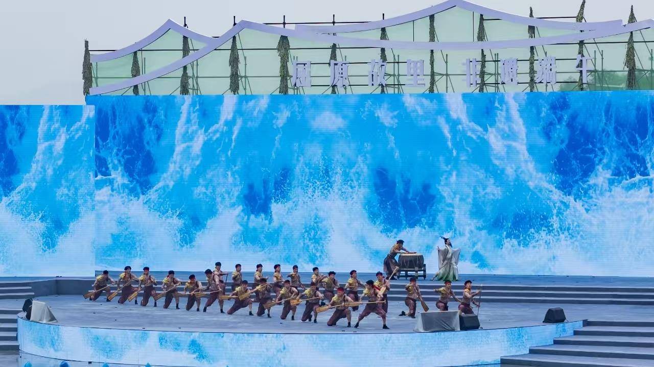 大型情景歌舞《中华大端午》率先震撼登场,91名舞者如峰峦汇聚、河流奔涌,编钟古乐与现代交响浑然一体,多名青年歌手以激昂歌声唱响主题歌,让“路漫漫其修远兮”的求索精神在新时代的旋律中振翅高飞。童声吟唱+诗歌演诵《古道骚风》则展开了一场跨越千年的对话——三闾骚坛农民诗人用古朴乡音吟诵《楚辞》,青少年学子以童声唱响《送别》,声情并茂的朗诵,让古老诗篇与当代诗韵同频共振,彰显“千年文脉,代有传人”的文化自信。