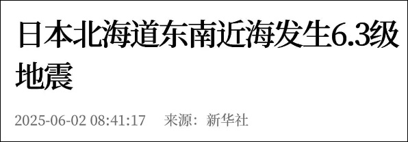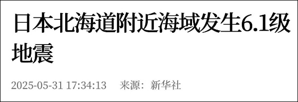 就在2天前,当地时间5月31日,据日本气象厅消息,当地时间17时37分左右,日本北海道钏路近海地区发生6.1级地震,最大震感为震度4,震源深度20公里。