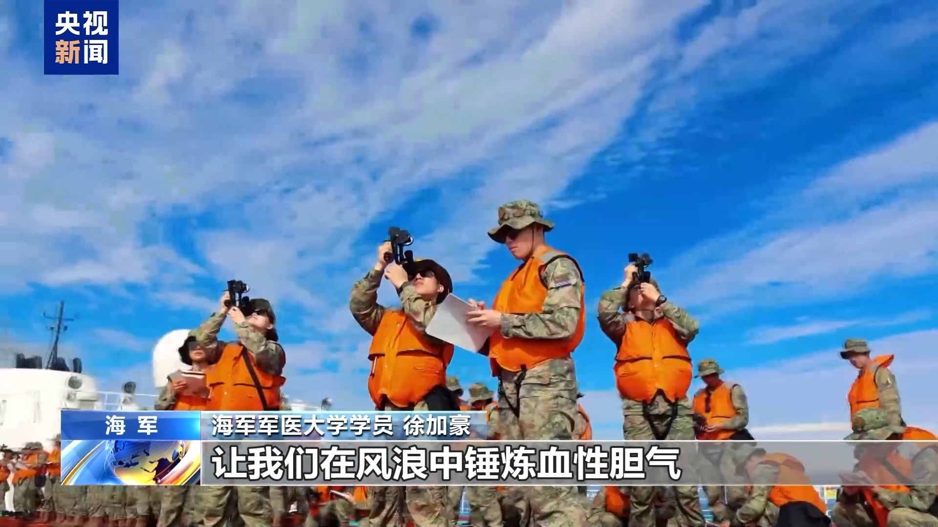 海军军医大学学员 徐加豪:此次航海实习,课程内容饱满、形式丰富,让我们在风浪中锤炼血性胆气,用实战标准磨砺打赢本领。