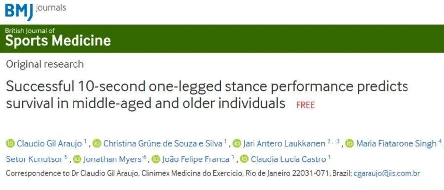2022年,《英国运动医学杂志》发表的一项研究发现,到了中老年,连单脚站10秒都做不到,那接下来的10年里全因死亡风险会增加84%。