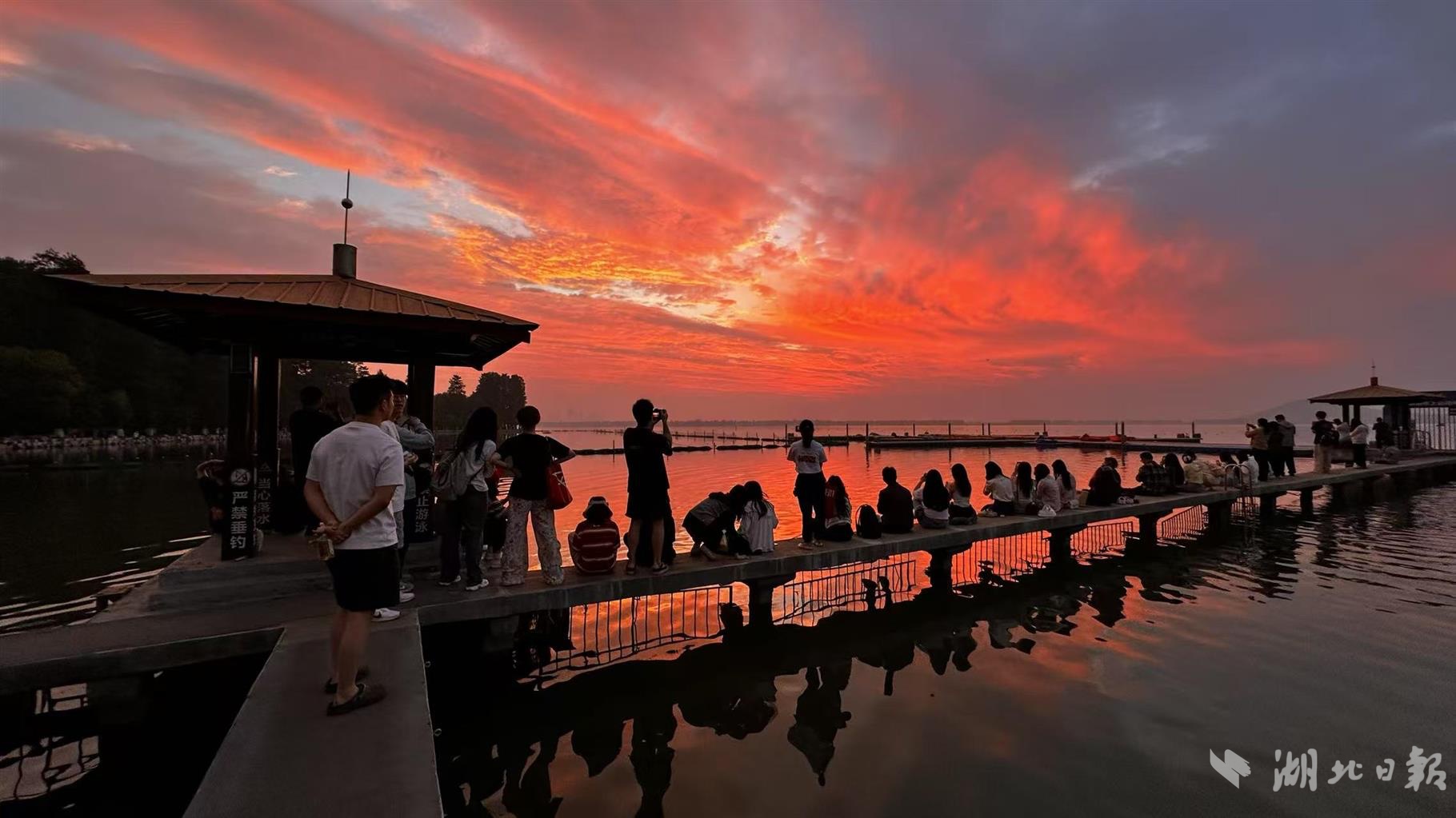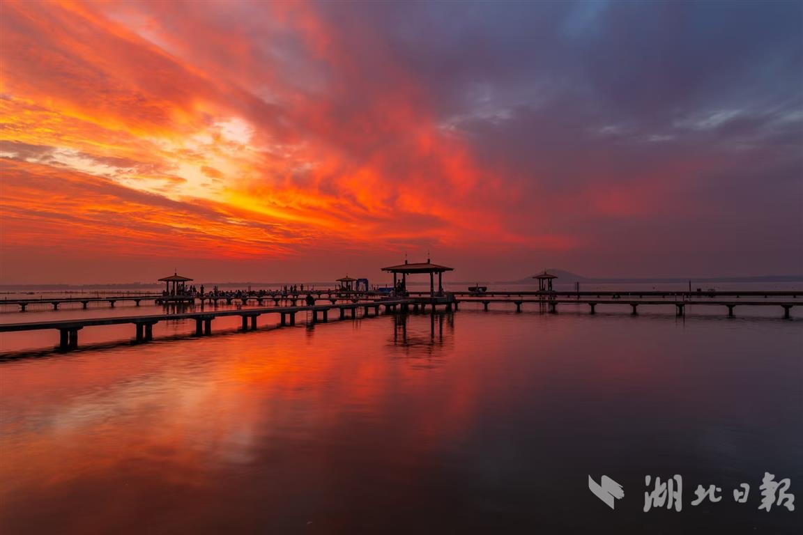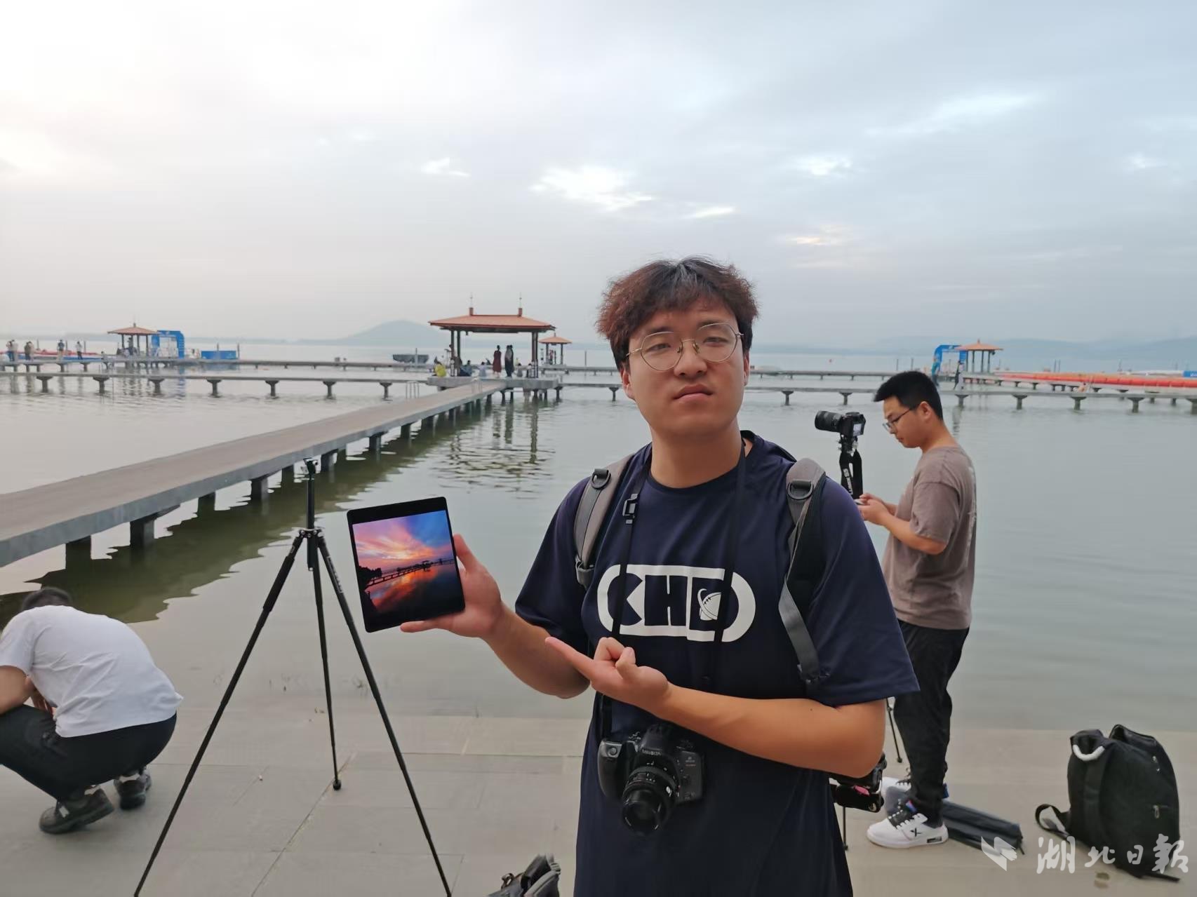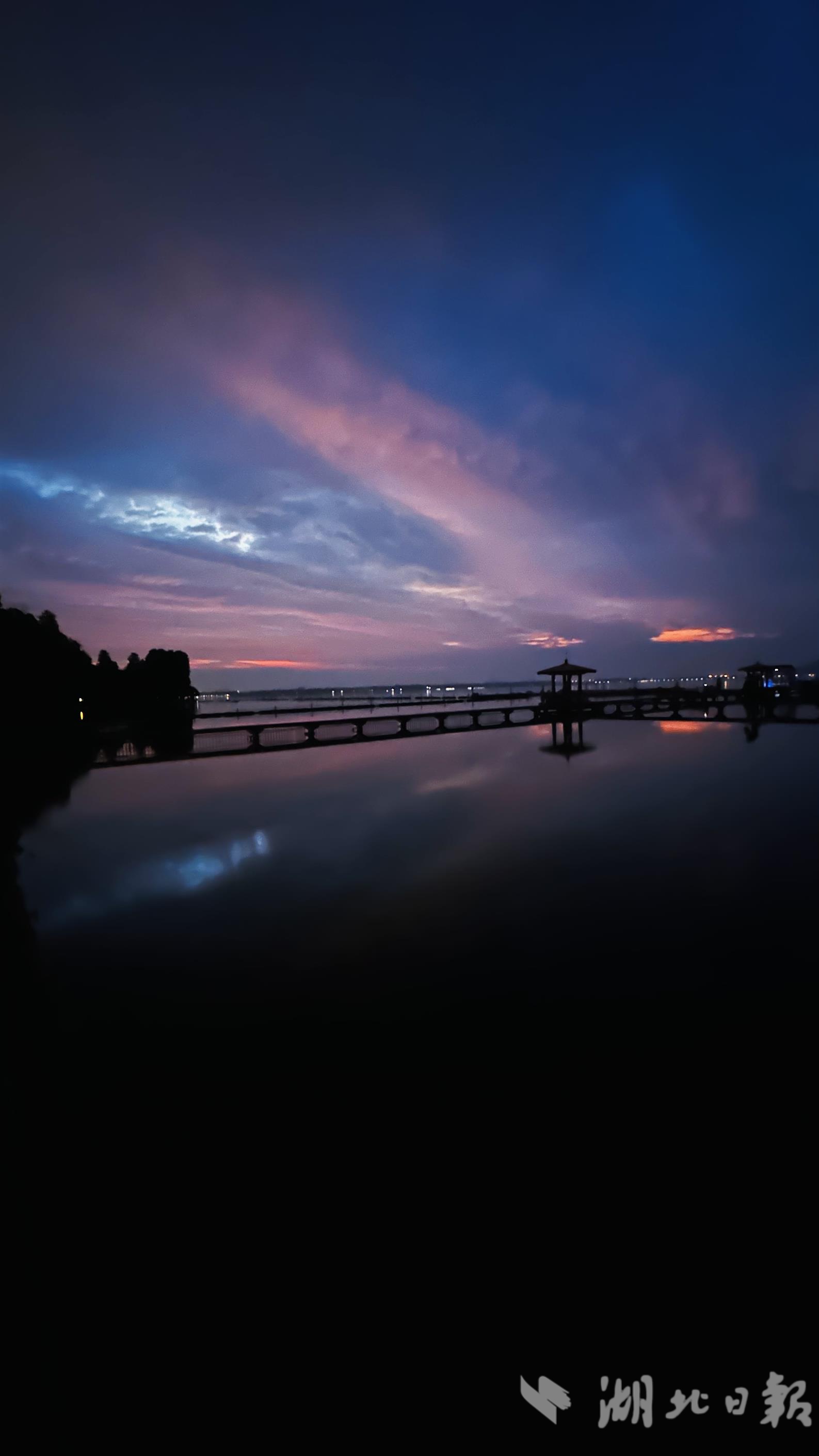 “我们7个人安排了四个机位,位置选择比较成功,拍到了好看的图。”李泽瑶也在东湖追到了早霞,他凌晨3点就到达了东湖。