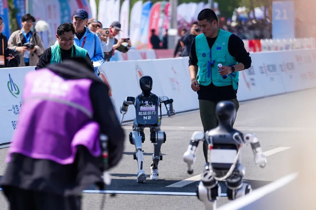 时间回到一个多月前,4月19日,北京亦庄,20支机器人队伍在21公里的赛道上各显神通,有的大步流星,有的小巧灵动,松延动力的N2机器人组成“小顽童”和“旋风小子”两支队伍,获得了亚军和第四名的好成绩。