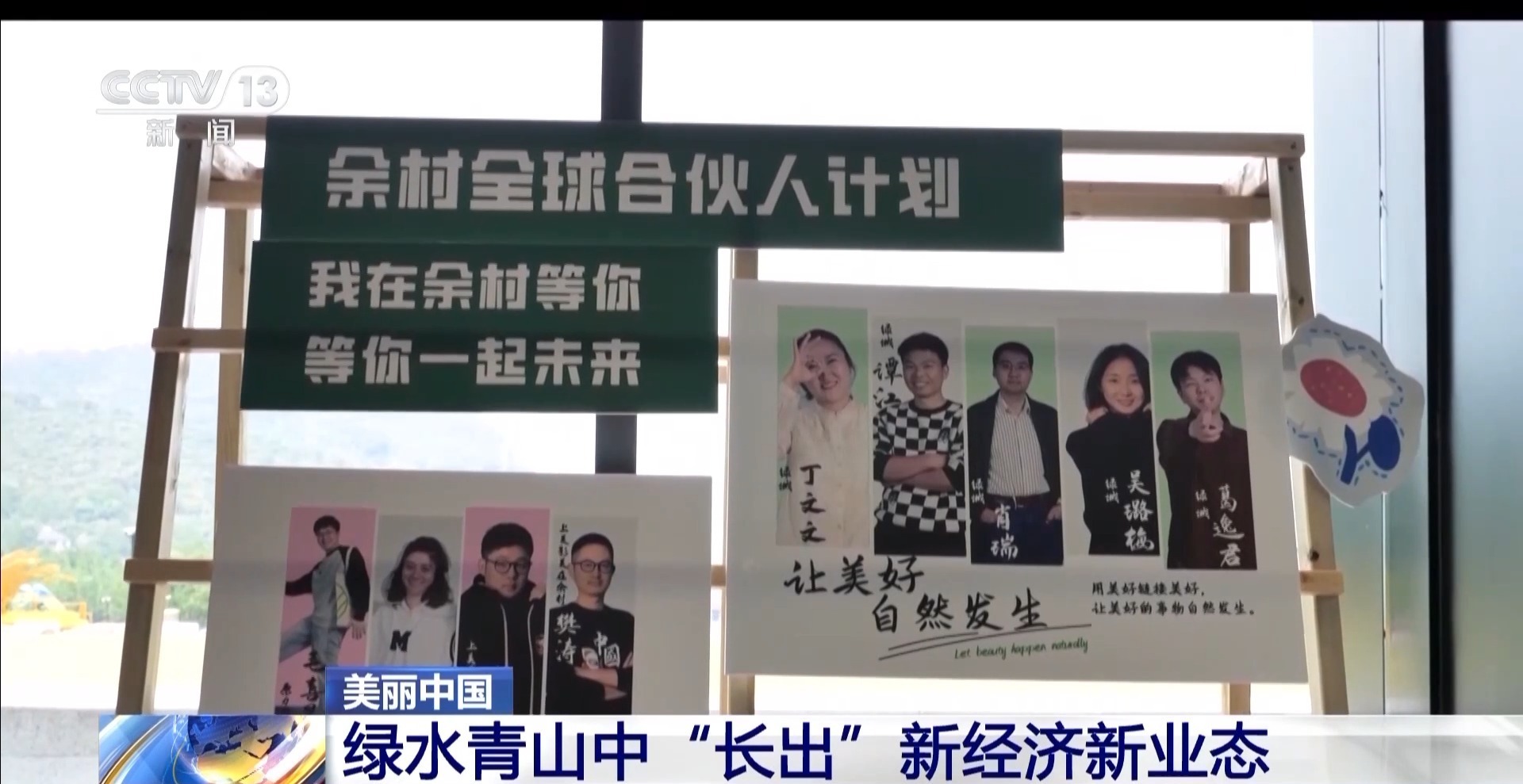 总台央视记者 赵晶:不仅守住了“绿”,余村还迎来了“青”。2022年7月,余村正式启动“全球合伙人”招募计划,广发“英雄帖”,面向全球招募绿水青山的“合伙人”,共创乡村美好未来。短短近三年时间,1200多位新村民来到余村创业就业,文化创意、数字经济等新业态在这座美丽乡村蓬勃兴起,绿水青山中长又出了新经济、新业态。