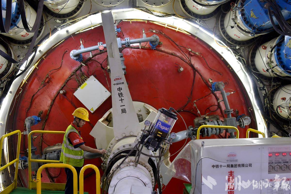 刀具是盾构机的啃咬地层的牙齿,磨损较大,需要人工进行多次更换。“我们专门给工人们制作了一个‘太空舱’,让工人可以在常压情况下换刀。”中铁十一局该项目负责人介绍,项目团队还创新采用了刀具磨损智能监测系统,对刀盘振动、刀具磨损等进行实时监控、预警,及时更换刀具。目前,盾构机已完成23次开舱换刀作业,实现了高水压地层盾构掘进零中断的技术突破。