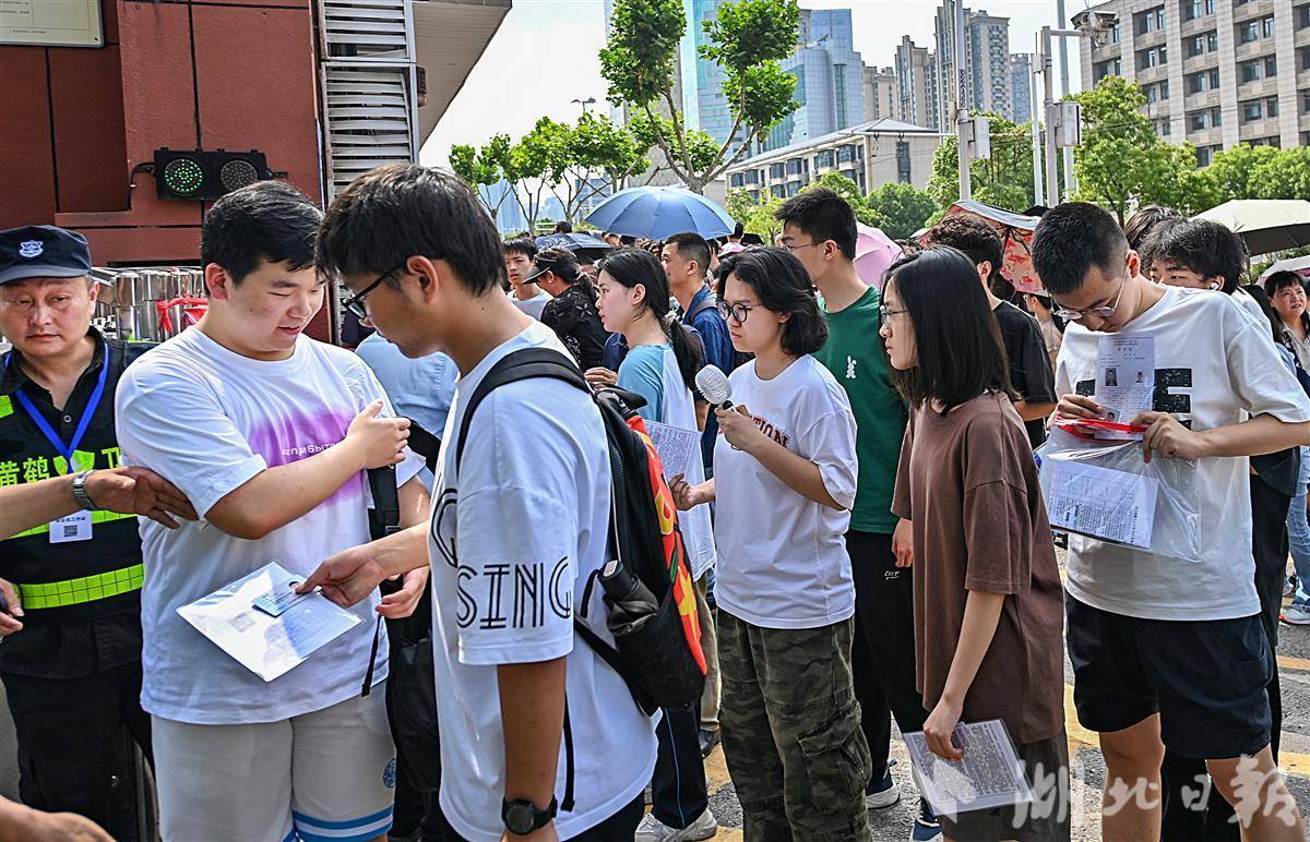 6月6日下午,考生进入武汉市东湖中学考点察看考场。当日,湖北高考各考点对考生开放,让他们对交通路线及路程所需时间、考点布局、考场位置等情况熟悉了解,做到心中有数。(湖北日报全媒记者 朱熙勇 摄)