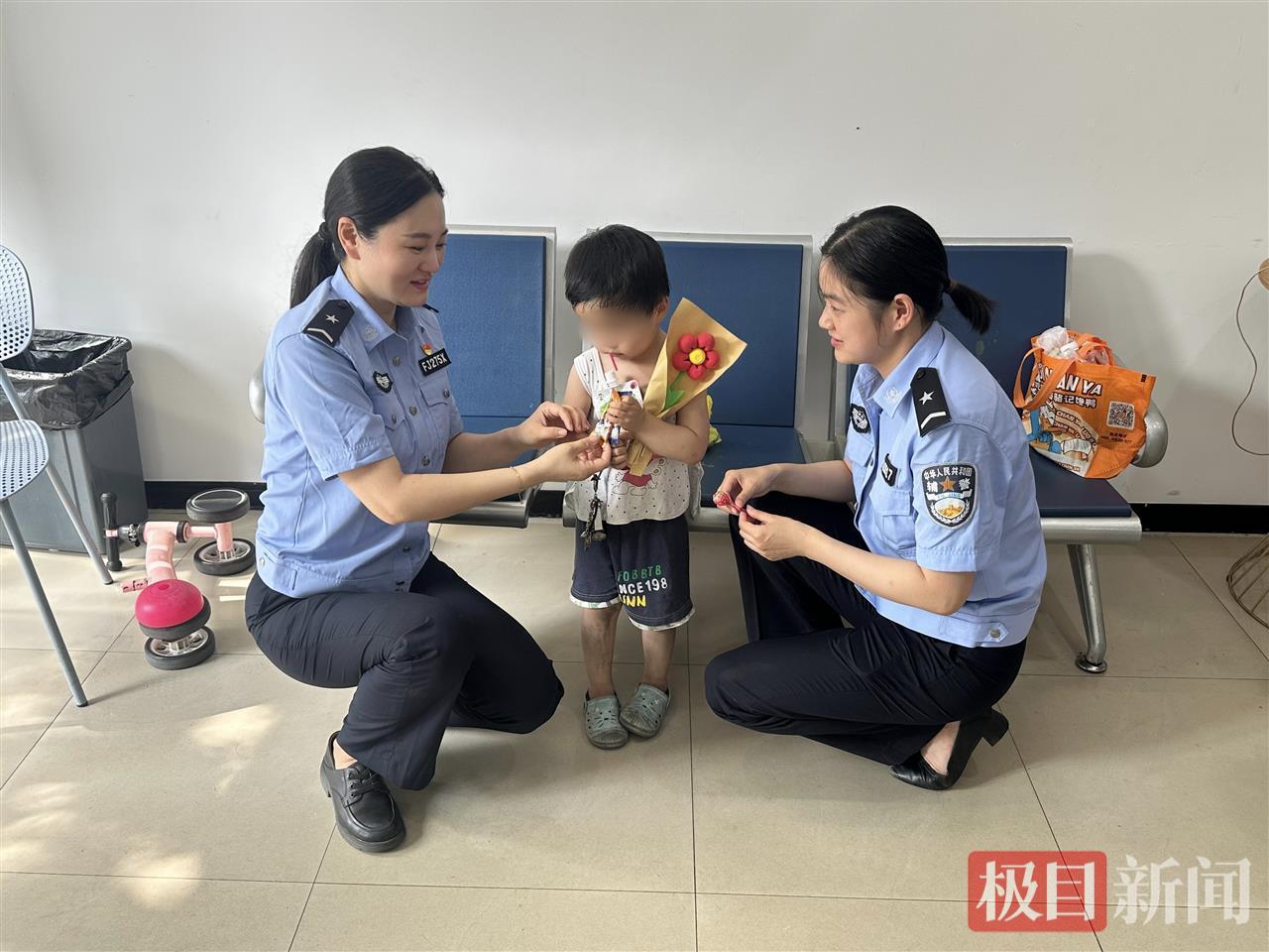 在所里,面对陌生环境,女童哭闹加剧,对名字、年龄及家人信息一概无法表达。此时,两位女辅警化身临时“妈妈”,耐心蹲下身子,用甜甜的糖果、可爱的玩具柔声安抚,陪她玩游戏、轻轻哼唱童谣。这份温柔的坚持逐渐融化了孩子的恐惧,她终于放松下来,反复重复着一个模糊的名字。