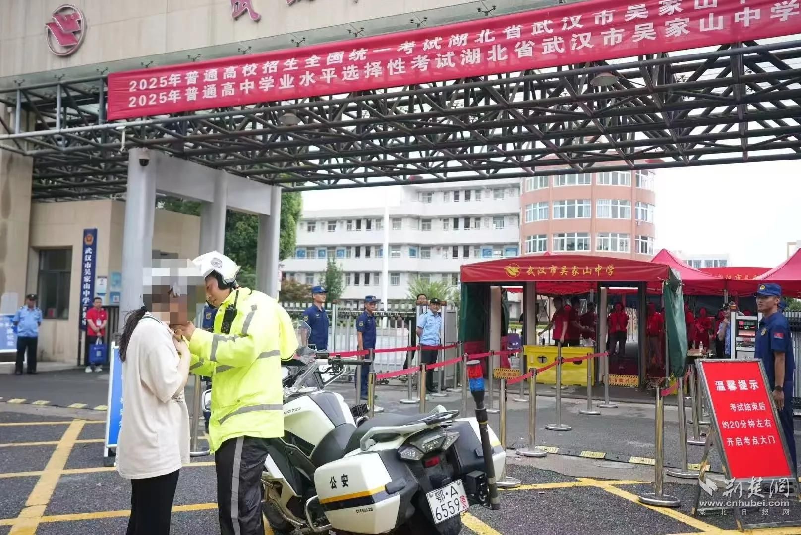 荆楚网(湖北日报网)讯(通讯员焦宣)6月7日上午,武汉市8.5万名考生分别在72个考点参加高考,考生人数和考点数再创历史新高。公安交管部门精心组织,科学调度,高考首日早高峰实现全市交通安全畅通,并处置送考求助10起,所有涉考警情全部妥善处置,确保考生按时抵达考场。