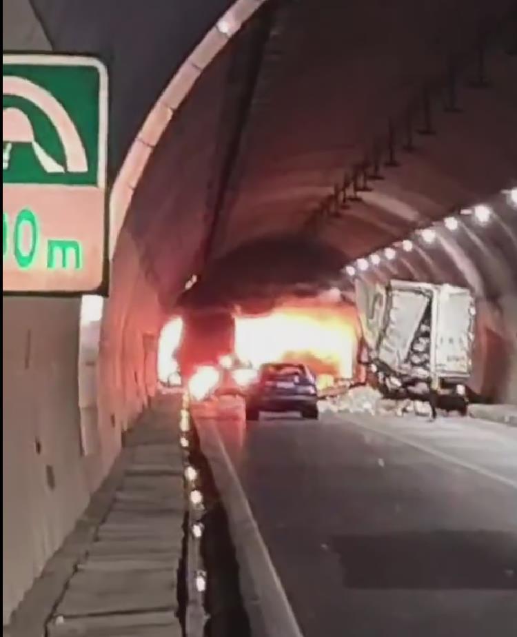 6月7日早,成都成巴高速成都方向金堂云顶山隧道内浓烟滚滚并有明火。有群众发视频显示,隧道内众人纷纷下车逃离现场,视频拍摄者边跑边喘着气说:“隧道里面发生爆炸,(大家)都在跑。”