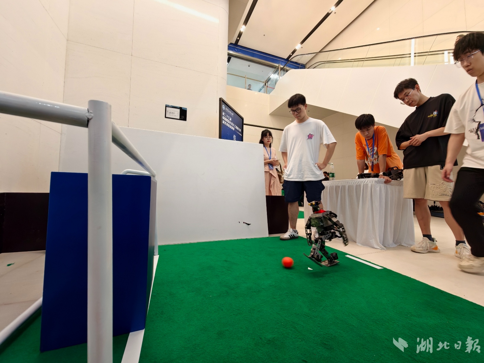 湖北日报讯(记者张竞恒)6月7日下午,2025年第二十七届中国机器人及人工智能大赛(湖北赛区)现场,机器人短跑和罚点球的分项比赛正在如火如荼地进行。来自华中科技大学、武汉大学、武汉工程大学等省内知名高校的参赛队伍均在比赛中拿出看家本领。