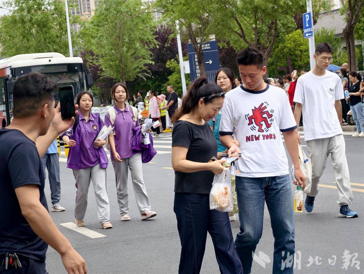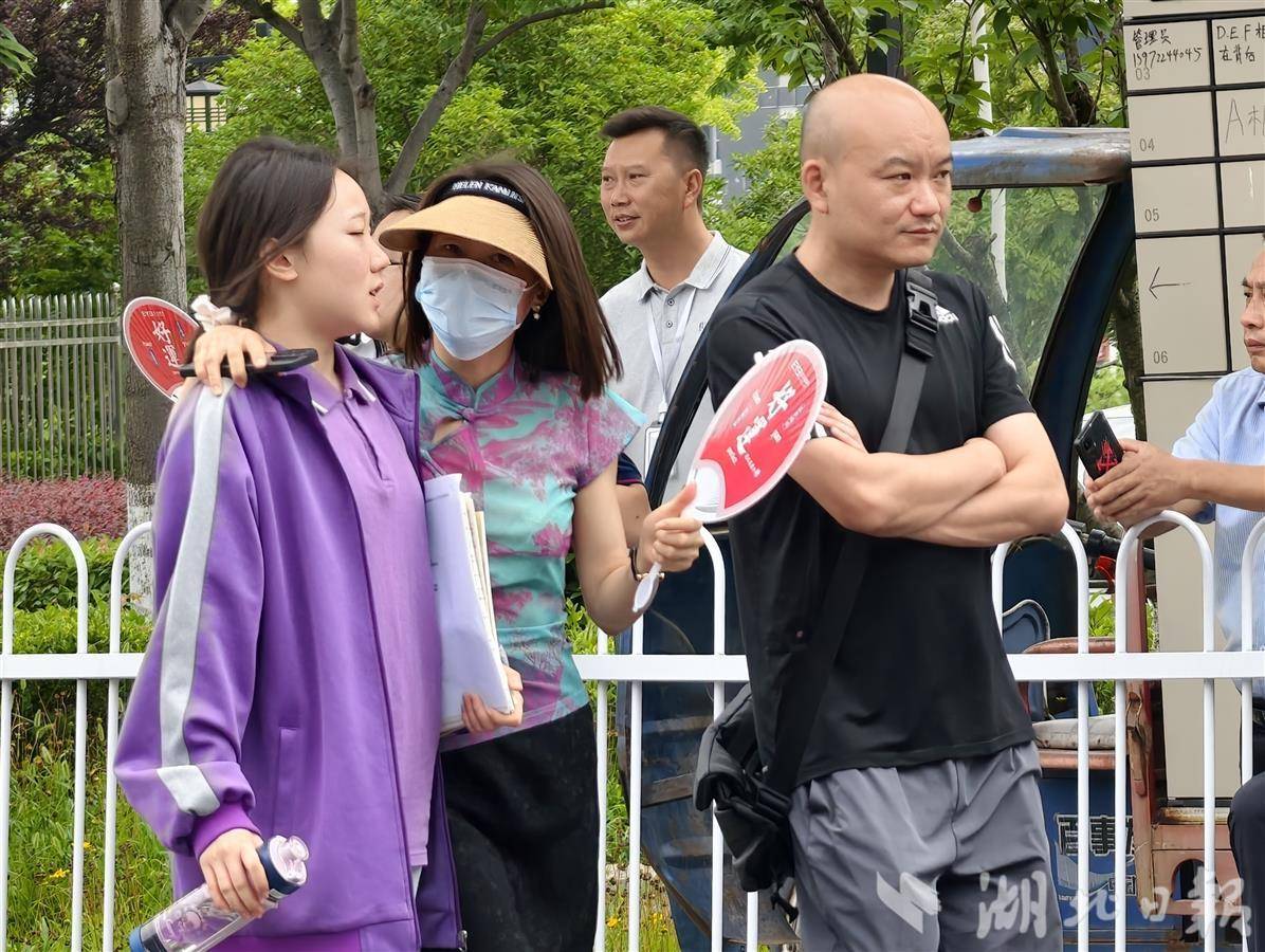 6月9日上午,襄阳三中候考家长为孩子加油鼓励。