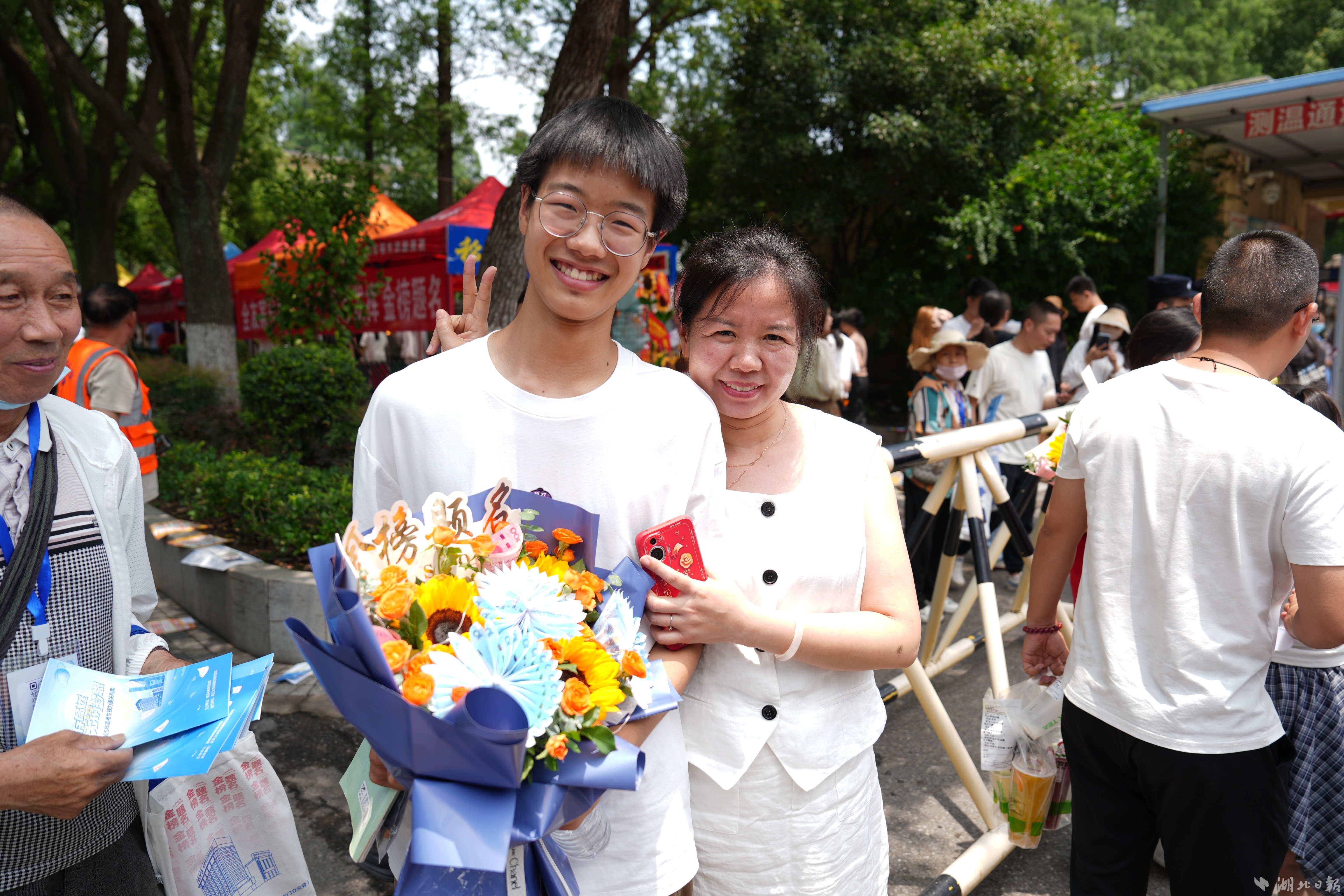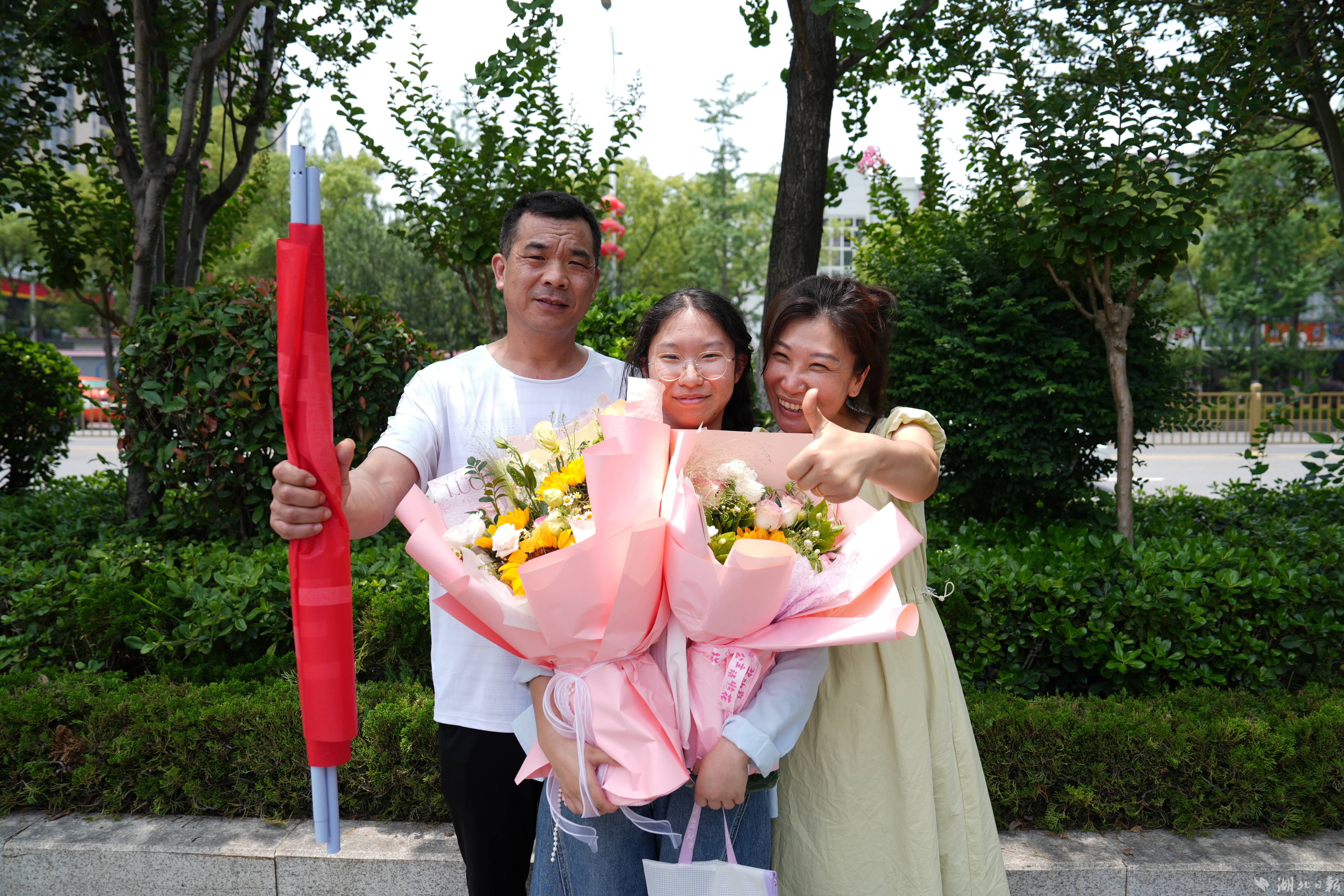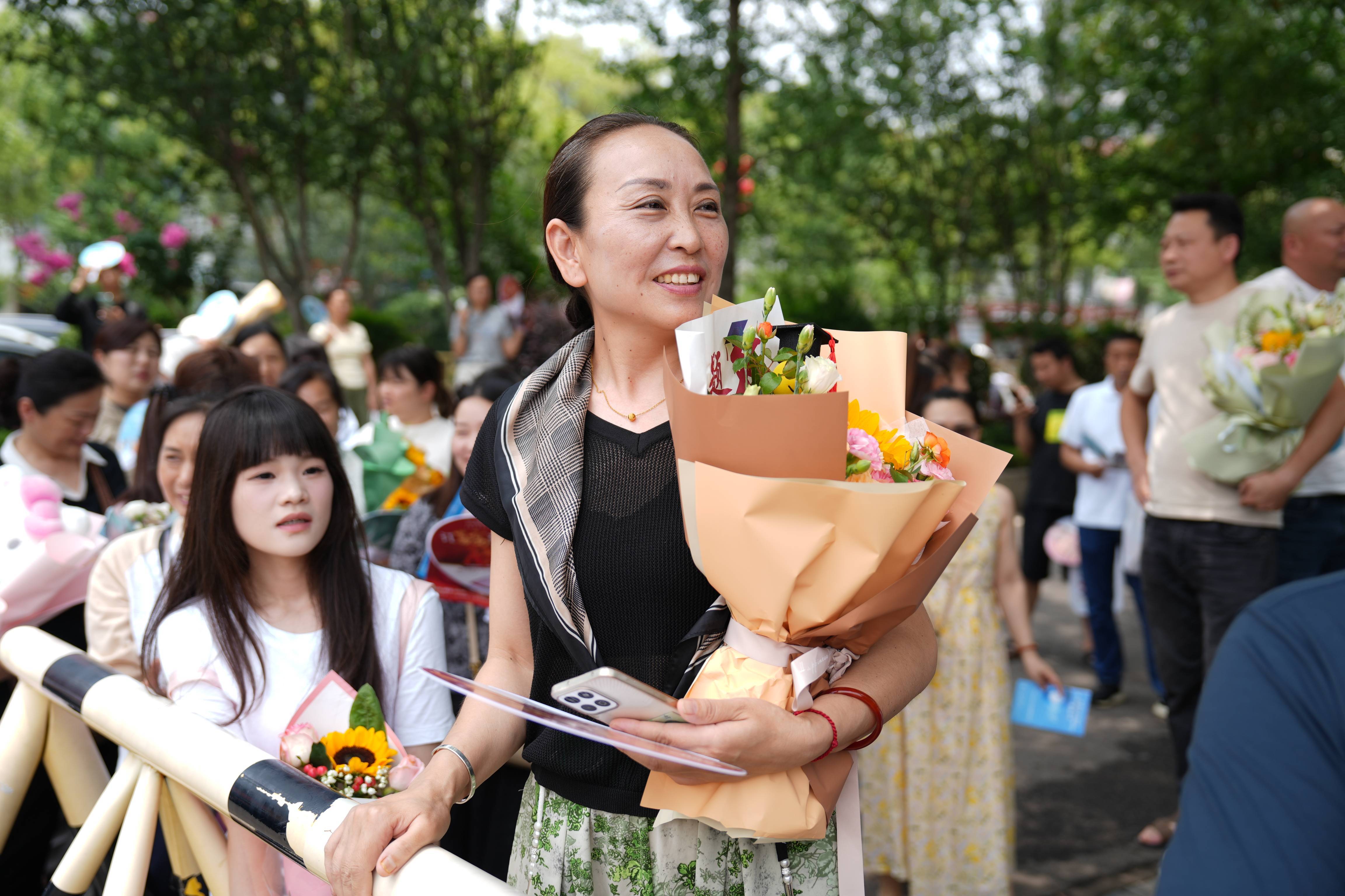 6月9日,潜江中学考场外,家长们用温暖的拥抱和芬芳的鲜花迎接考试结束的孩子,传递着无声的爱与鼓励。不少考生面带自信笑容,步履轻快地走出考场,展现出良好状态。(湖北日报全媒记者 黄璐、通讯员杨靖)