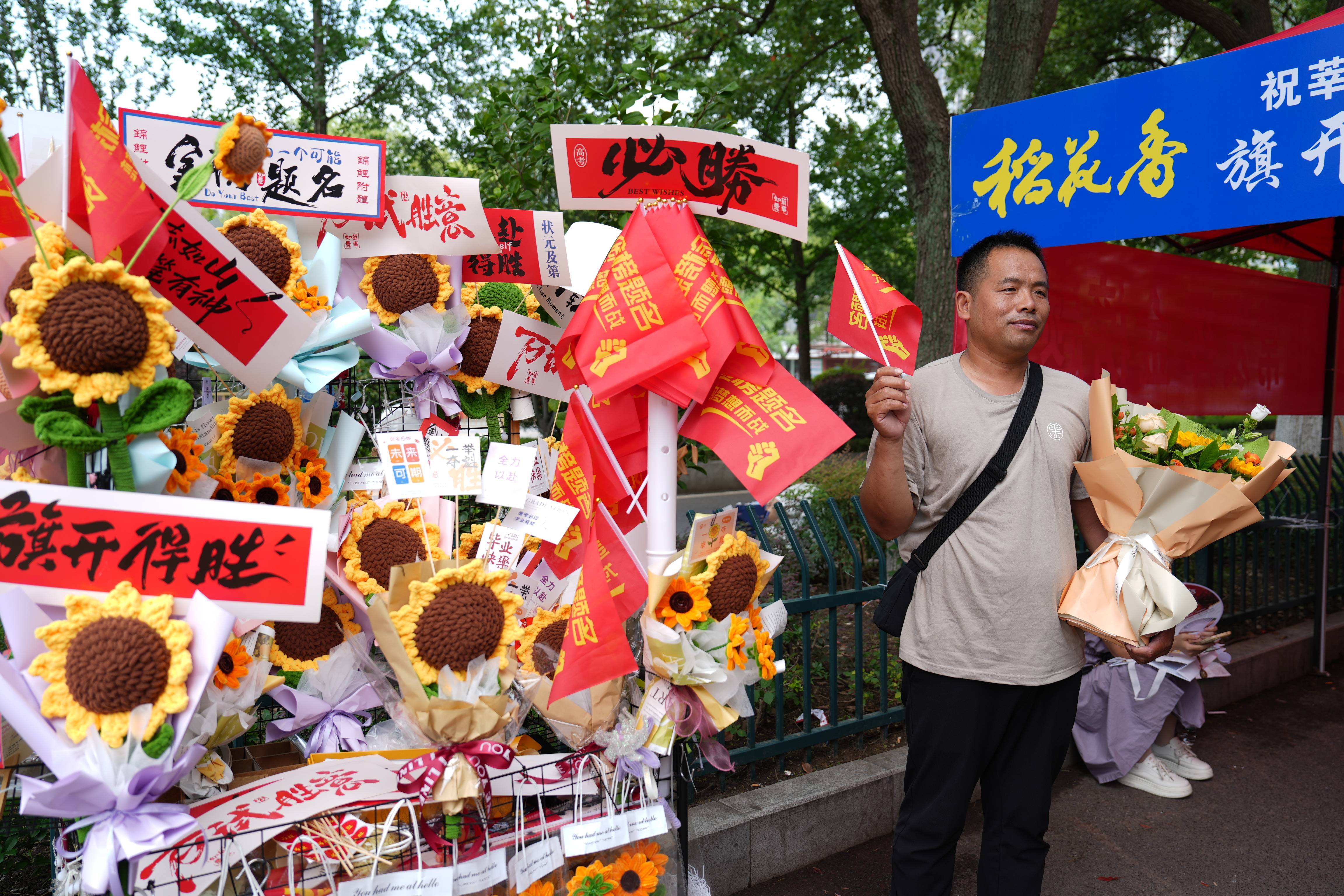 6月9日,宜昌市葛洲坝中学考点,考生一出考场,就收到父亲的鲜花,爸爸说:“不管考得如何,情绪价值和仪式感必须拉满!”(湖北日报全媒记者汪蕾、周泉)