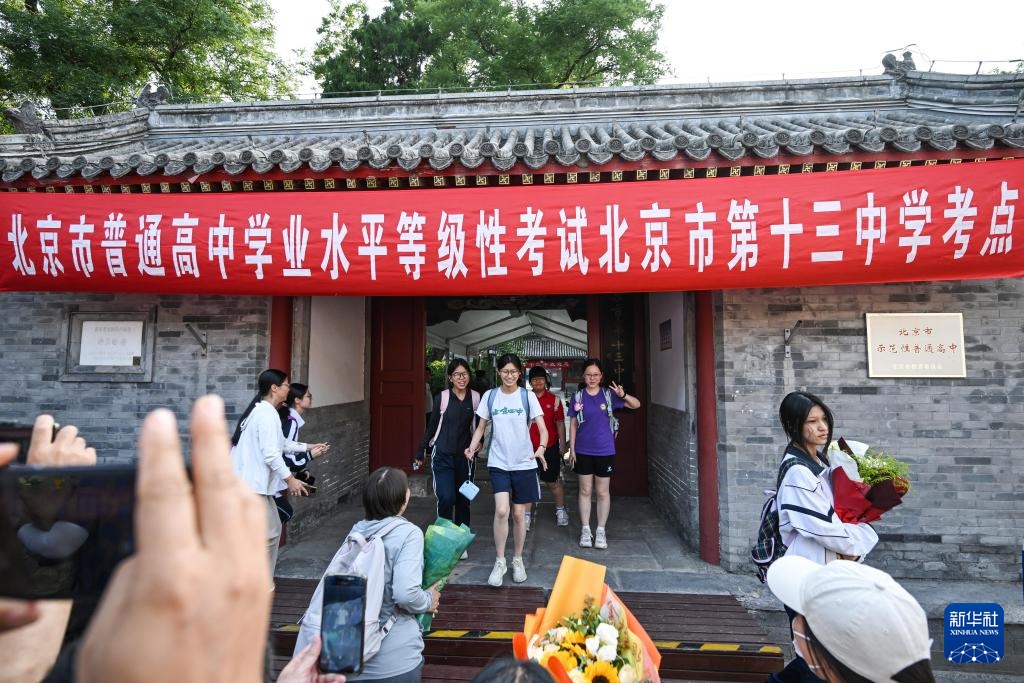 6月10日,考生从北京市第十三中学考点走出。