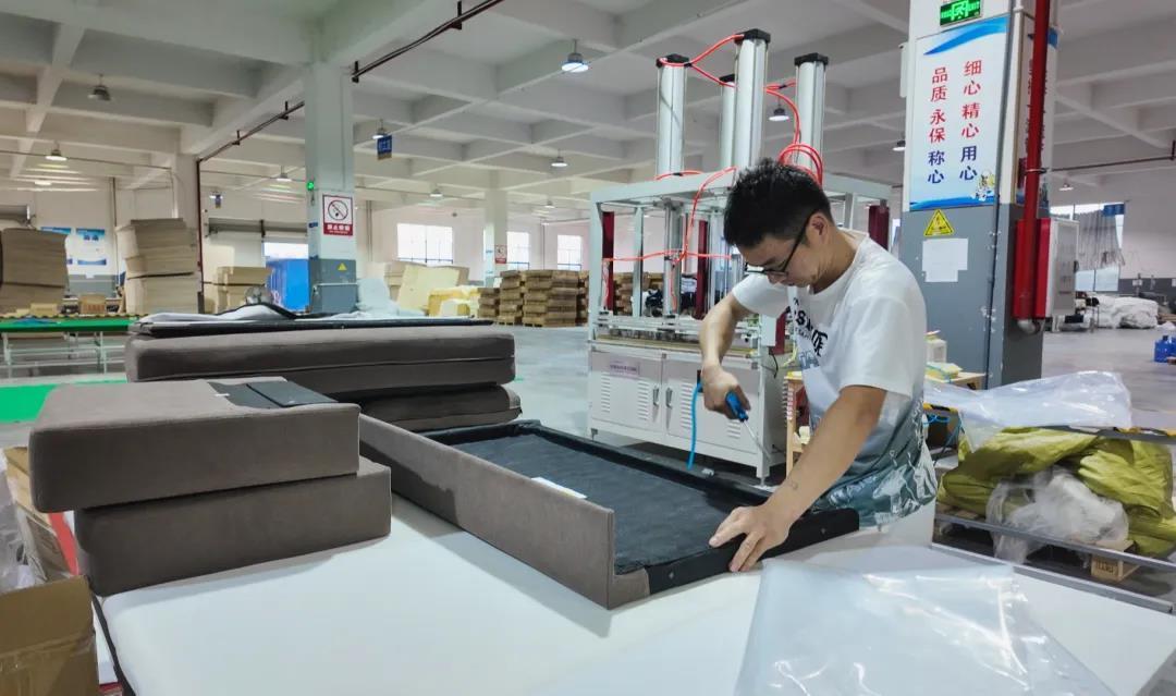产品热销的背后,离不开真空压缩包装技术这一核心竞争力,该企业利用自研技术将成品沙发压缩至原体积的五分之一,即使经历“跨国”长途运输,沙发拆包后也能迅速回弹,恢复饱满形态,不仅降低了运输成本,也保障了产品质量。