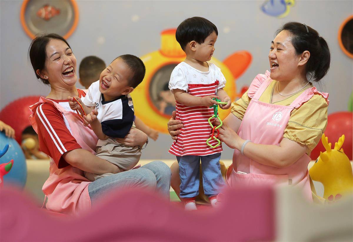 6月10日,荆门市东宝区泉口街道浏河社区托育服务中心内欢声笑语,保育员正带领孩子们进行趣味游戏,这些保育员通过“妈妈岗”计划实现灵活就业,既能照顾孩子又能获得稳定收入。今年以来,荆门市东宝区精准对接妇女需求,通过“企业 社区”联动机制,为妇女量身定制教育、纺织、电商等多个领域的“妈妈岗”,为育儿女性提供弹性工作、就近就业机会。(视界网 赵平 欧阳萍 摄)