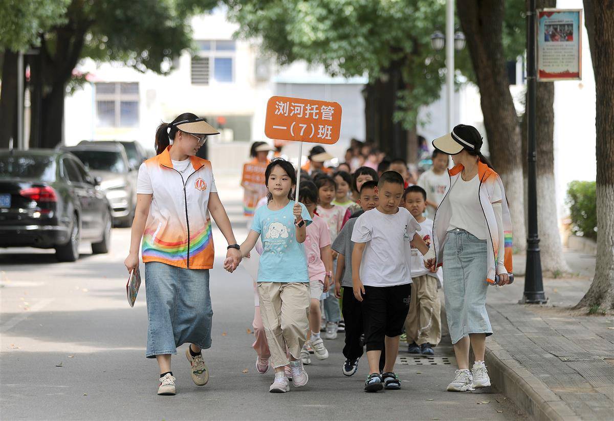 6月10日中午,荆门市东宝区泉口街道浏河社区托育服务中心托育老师接孩子们放学,并提供生活照料、安全看护及学习辅导。