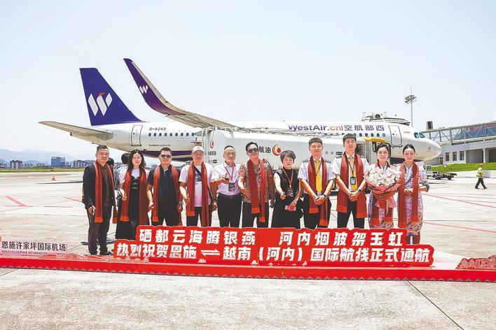 湖北日报讯 (记者蔡俊、通讯员陈航、关林子、董姝君)6月12日,从越南河内入境的PN6536国际航班平稳落地恩施许家坪国际机场,143名越南籍游客搭乘该航班来恩施旅游观光。这是恩施航空口岸正式对外开放后开通的首条国际航线,标志着我省对外“空中桥梁”又多了一个重要节点。
