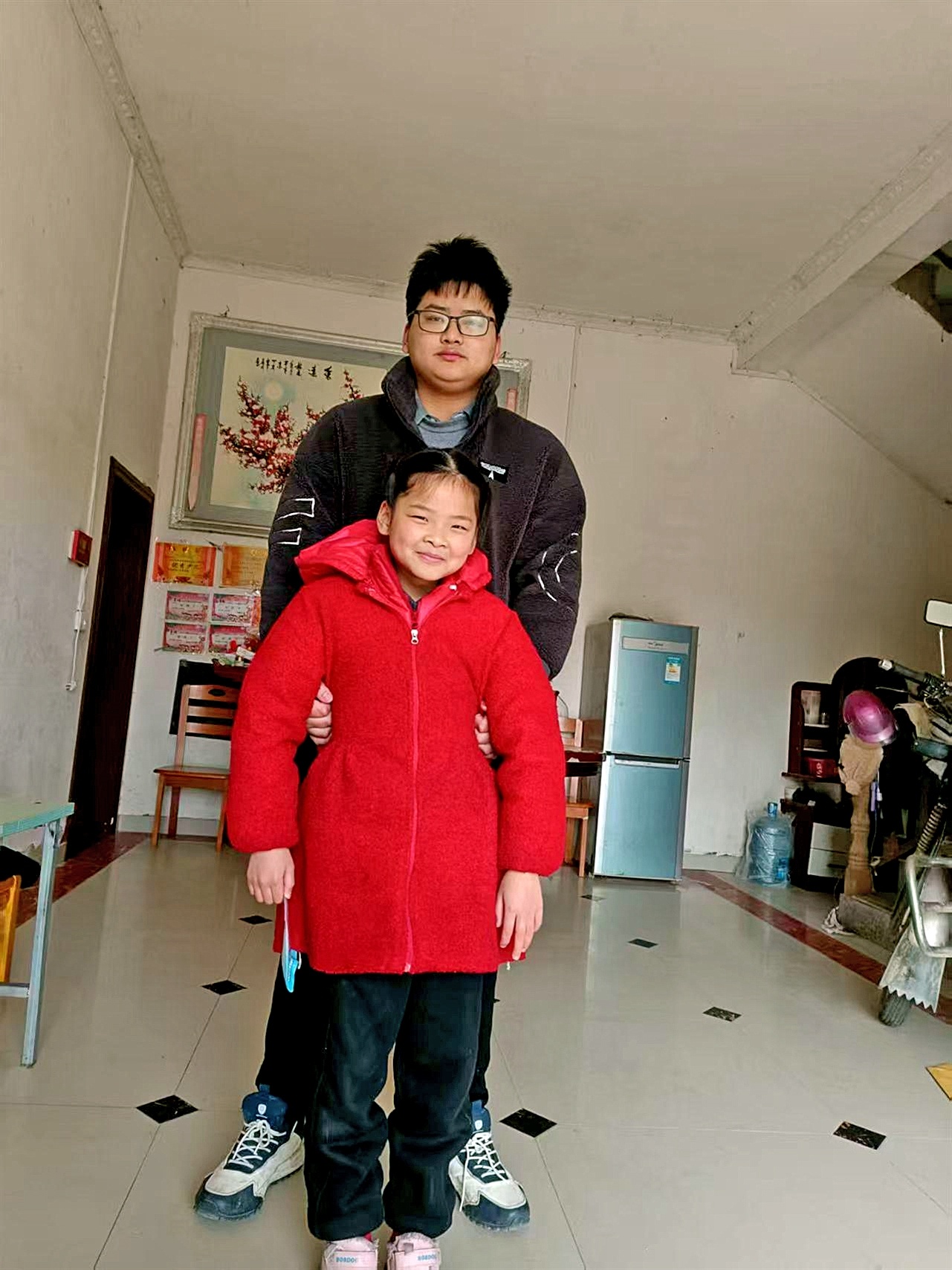鲁飞阳和妹妹,此时是他最胖的时候
